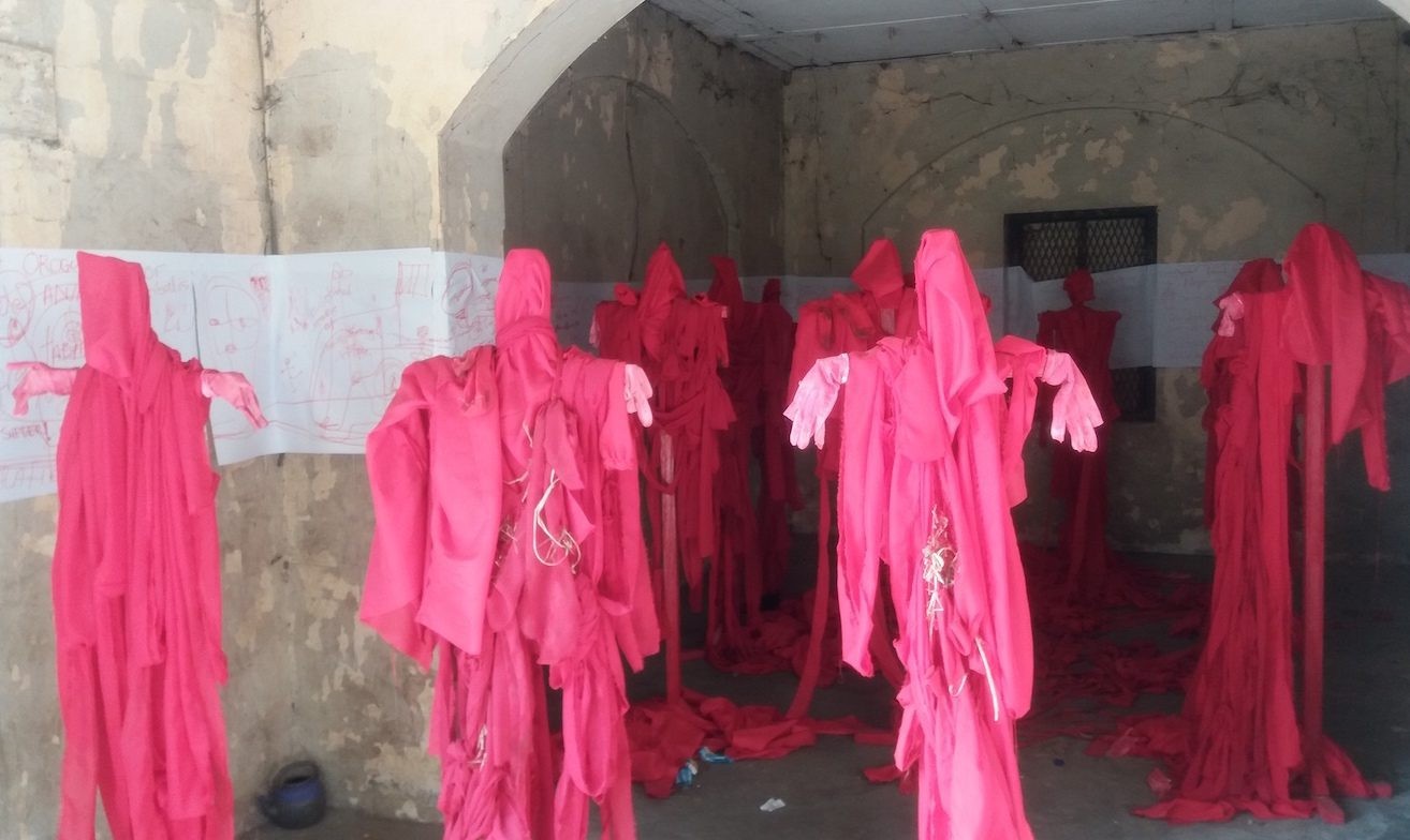 <figcaption> Jelili Atiku, In The Red Series, 2017. Photo: Obidike Okafor