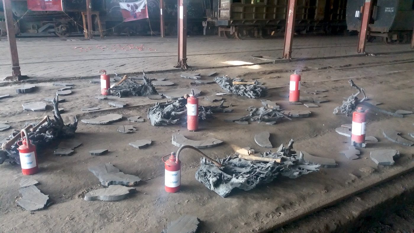 <p class="normal">In the railway shed, the artists remind us of how concepts such as peace, death, terror, corruption, and poverty are major factors that affect the stability of the world. Even before consuming the creative menu at the railway shed (the biennale’s first stop), one cannot help but notice the squatters who live close by in improvised houses. The squatters, who are worried about being evicted by the railway authorities at any time, sometimes use the railway shed as a thoroughfare.