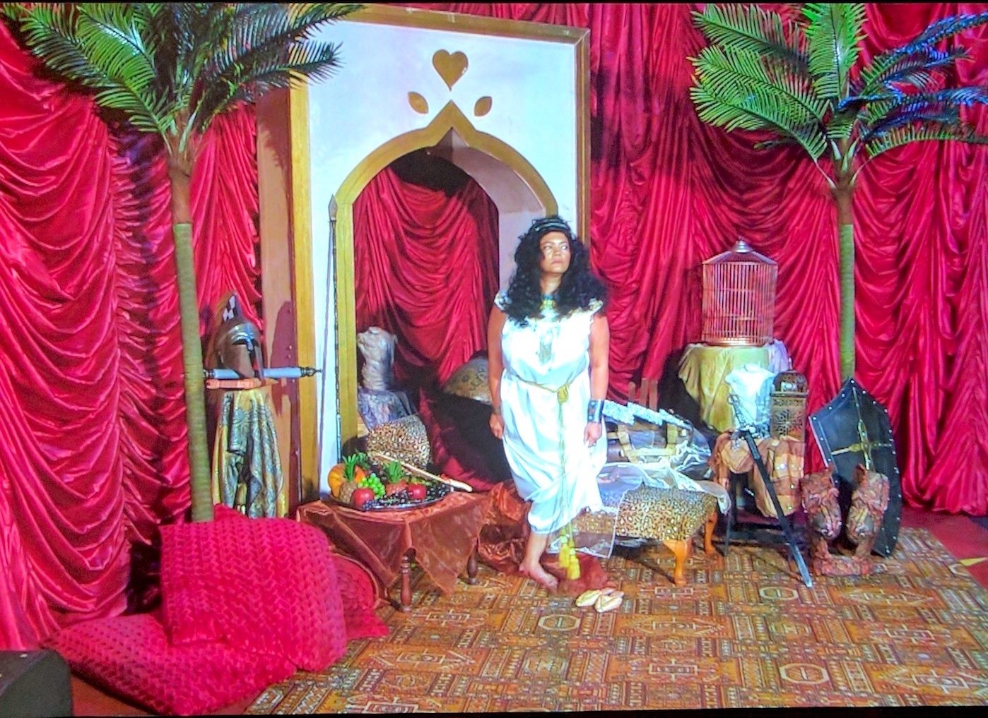 <figcaption> Tracey Rose, Cleopatra was a Black Bitch, Digital video, color, sound. With Chris Martin and Matthew Krouse. From the series WhoreMoans: An Uncivil Memoir Of A Rough Ride, 2017. Neue Galerie. Photo: C&