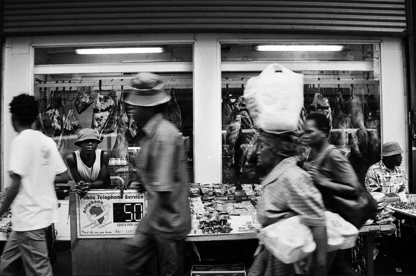 <figcaption> Andrew Tshabangu, Butchery, Traders and Taxis, from the series City in Transition, 2003. Courtesy the artist and Gallery MOMO