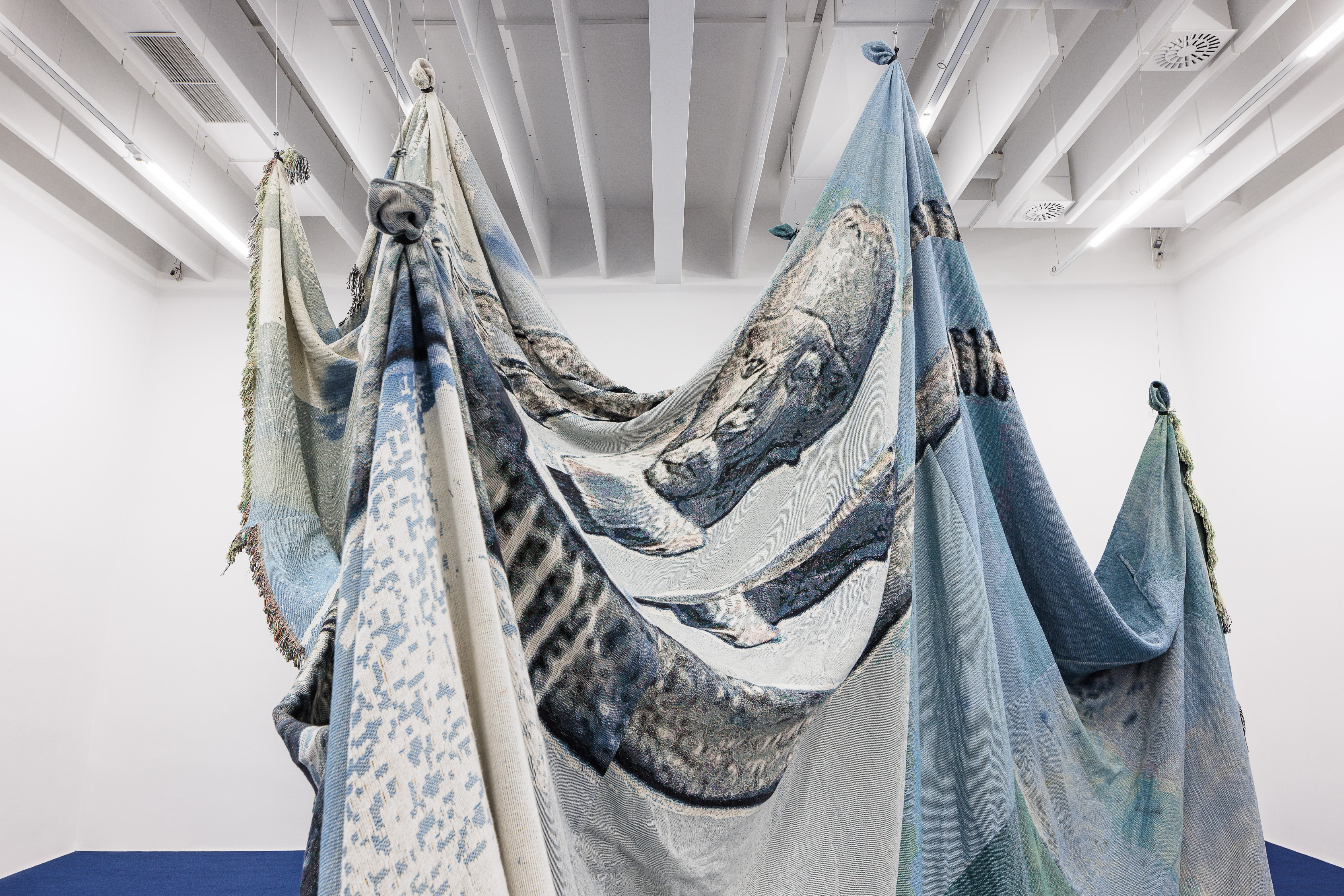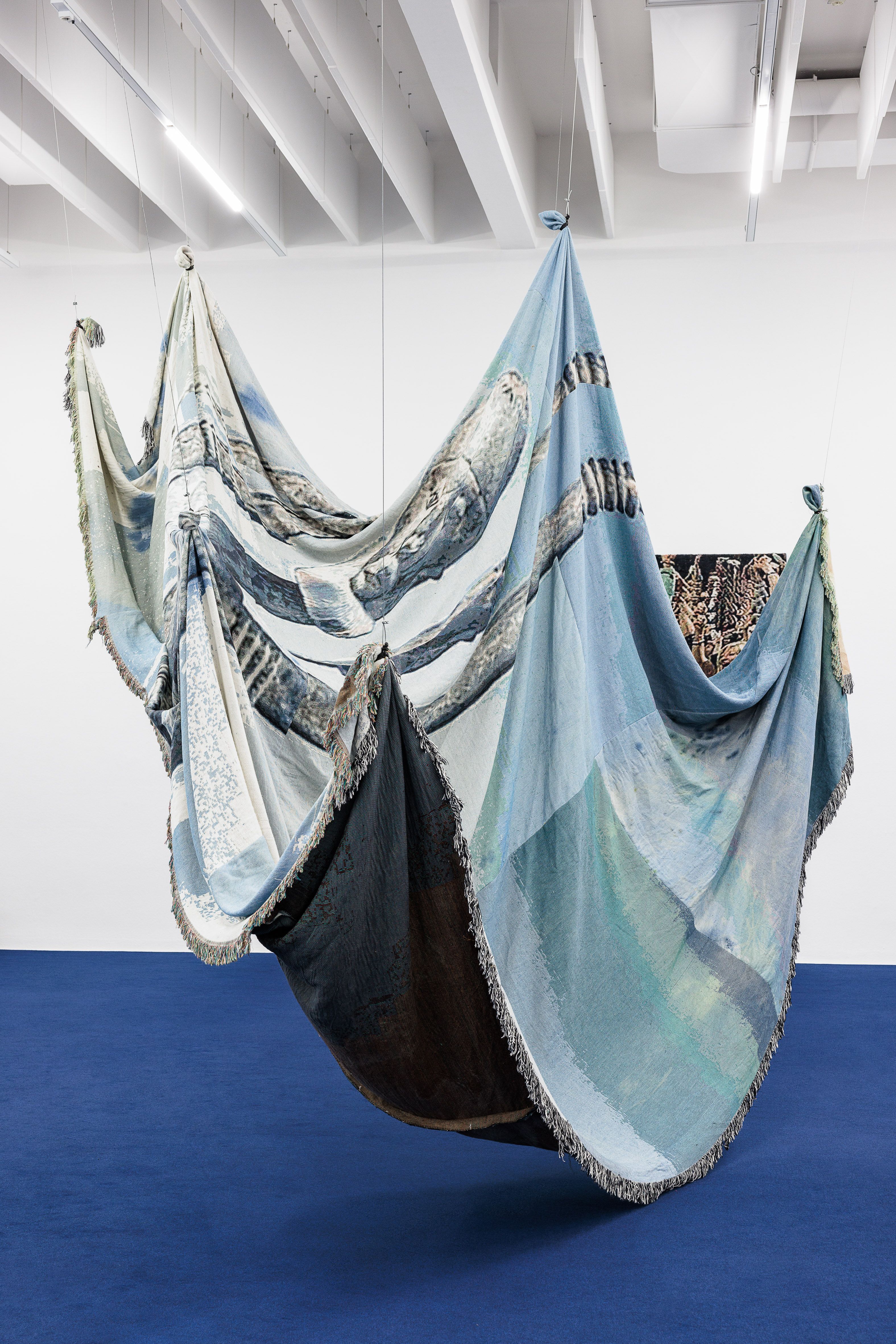 Singing ‘I’m tired’ falls short of any account of the causes and effects of racial traumas. And still, the phrase highlights the significance of ‘song’ to both the in/visibility associated with blackness and our understanding of its images. Sing-up, or be sung-for. I focus on redressing how systems of power deploy images and technology to sing-for: to score myths, naturalise racist rhythms, and further compose nationalist bonds while severing sacred and secular solidarities within blackness itself. Photographically woven cotton tapestries represent entangled intersections through which to conceptualise deep and persistent traces of repressed historical realities.