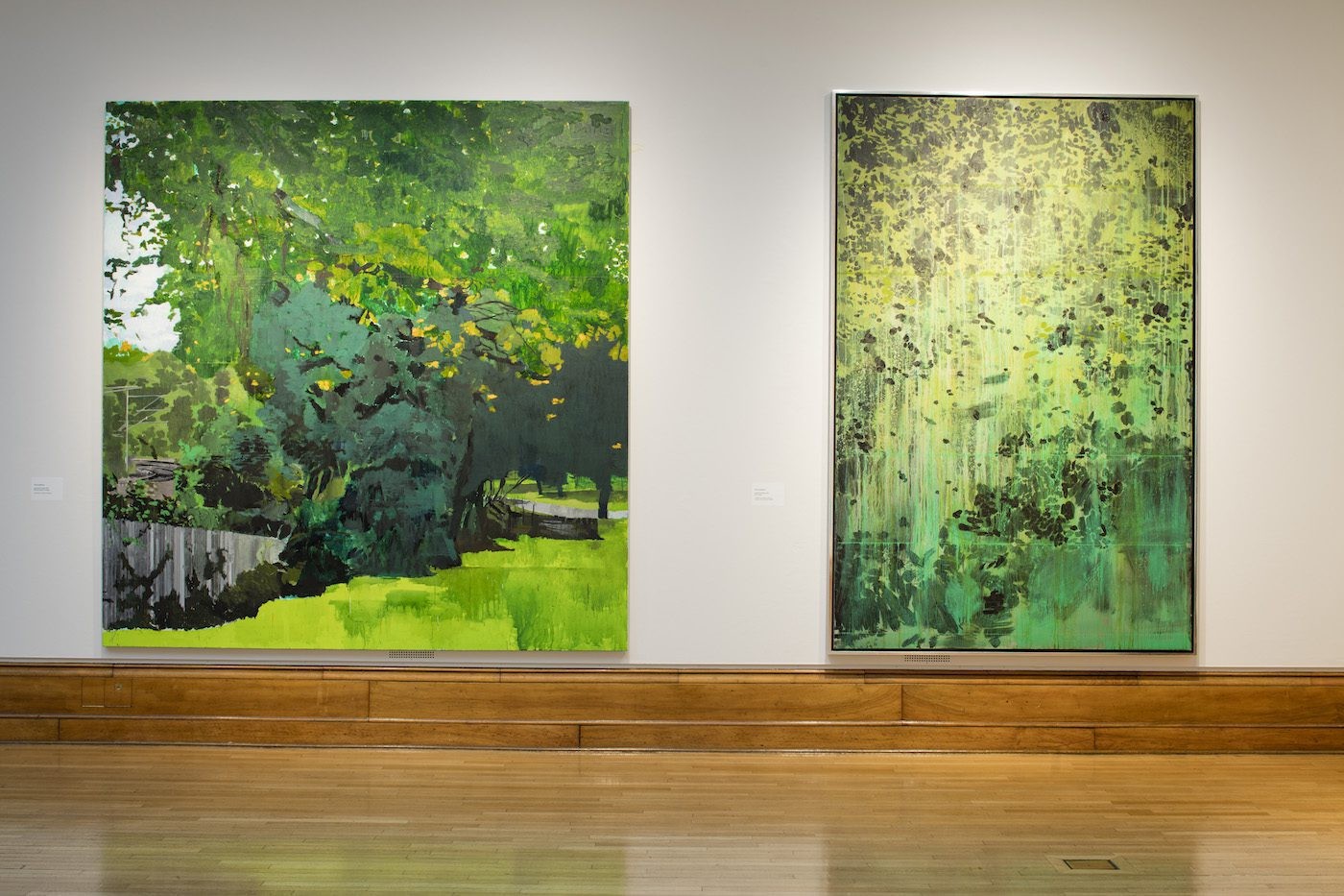 Hurvin Anderson, Across The Tracks, 2013 (left) and Northern Range, 2010 (right). The Turner Prize Exhibition. Ferens Art Gallery. Hull. Photograph by David Levene