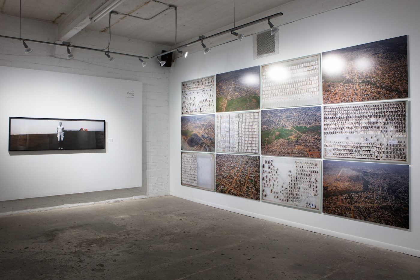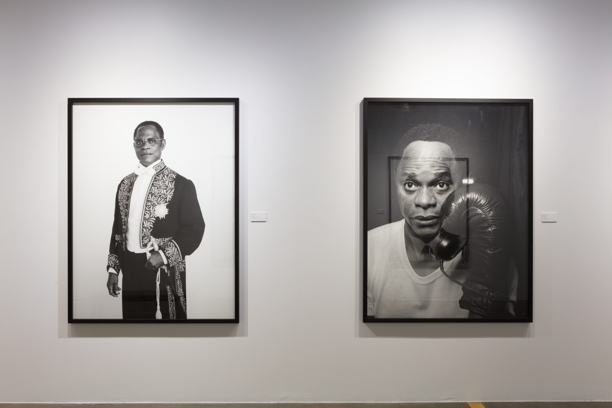 <figcaption> Installation view of Leo Shobun Baile in the exhibition African Cosmologies: Photography, Time, and the Other at FotoFest Biennial 2020, Houston, TX. Photo: Emily Peacock. Courtesy of FotoFest, Houston, TX.