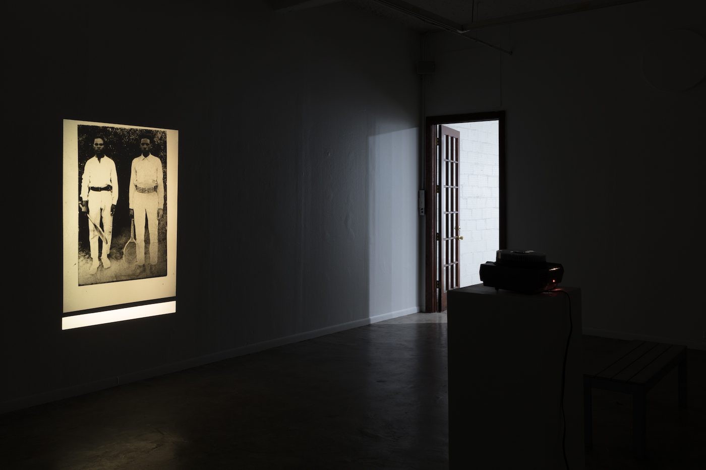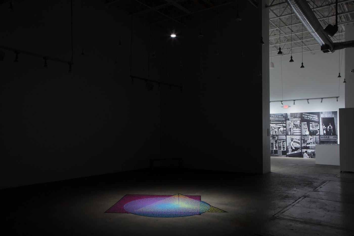 <figcaption> Installation view of Faisal Abdu'Allah in the exhibition African Cosmologies: Photography, Time, and the Other at FotoFest Biennial 2020, Houston, TX. Photo: Emily Peacock. Courtesy of FotoFest, Houston, TX.