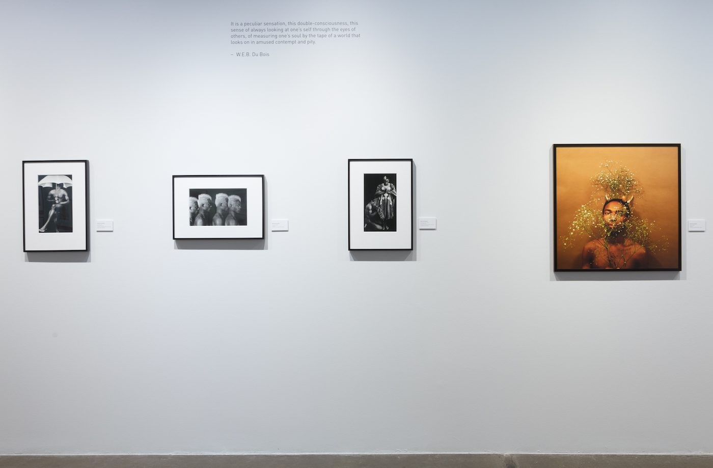 <figcaption> Installation view of Eric Gyamfi in the exhibition African Cosmologies: Photography, Time, and the Other at FotoFest Biennial 2020, Houston, TX. Photo: Emily Peacock. Courtesy of FotoFest, Houston, TX.