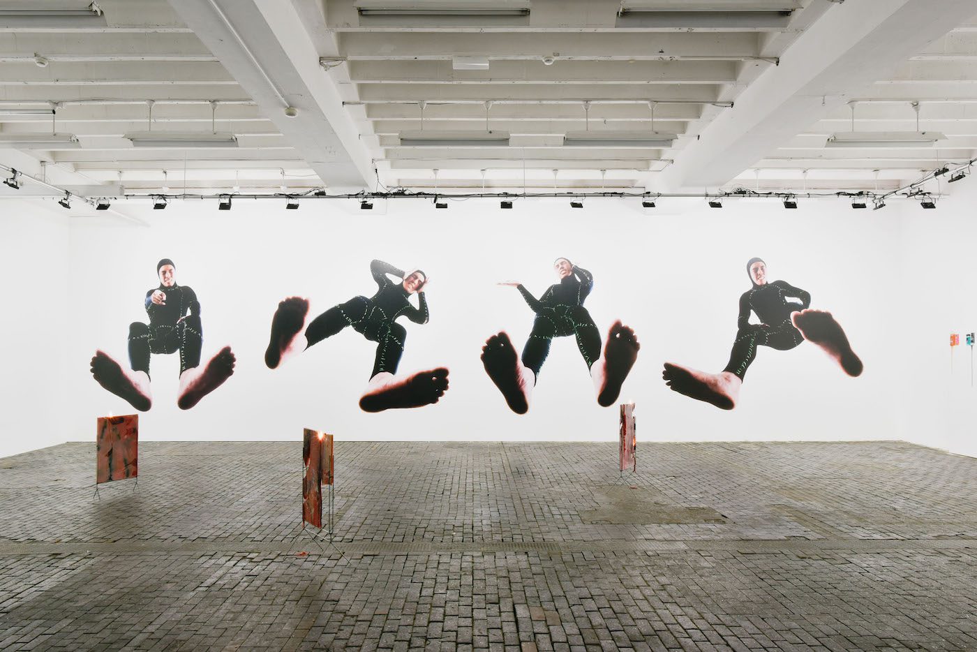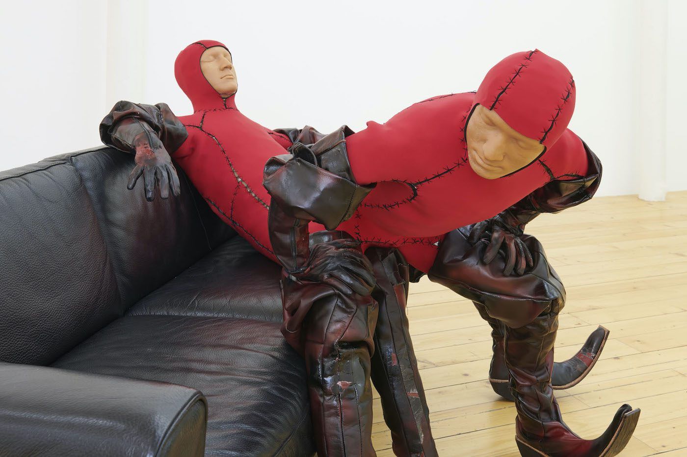 <figcaption> James Bantone, Demon Tingz (boots and gloves in collaboration with Jazil Santschi I S E), Plattform20, Fri Art, 2020. Photo©Guillaume Python