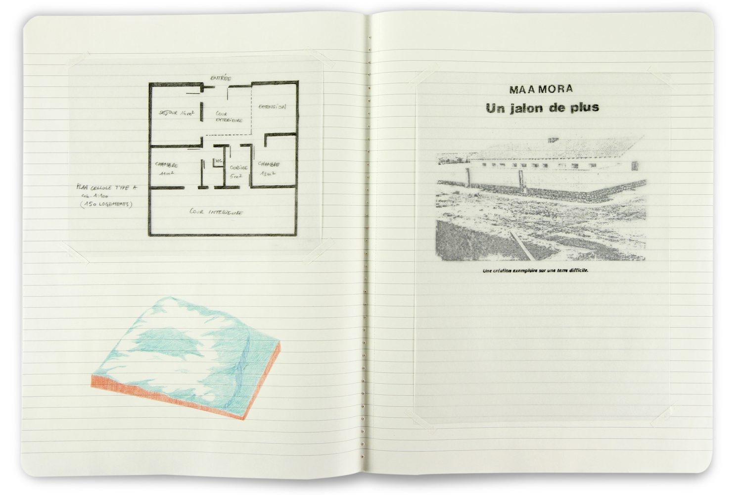 <figcaption> Massinissa Selmani, 1000 villages, Drawing 2/20, 2015. Drawings on double pages and notebook cover. Graphite, marker and transfer on paper and tracing paper. Collection Frac entre Val de Loire, France. Courtesy the artist.