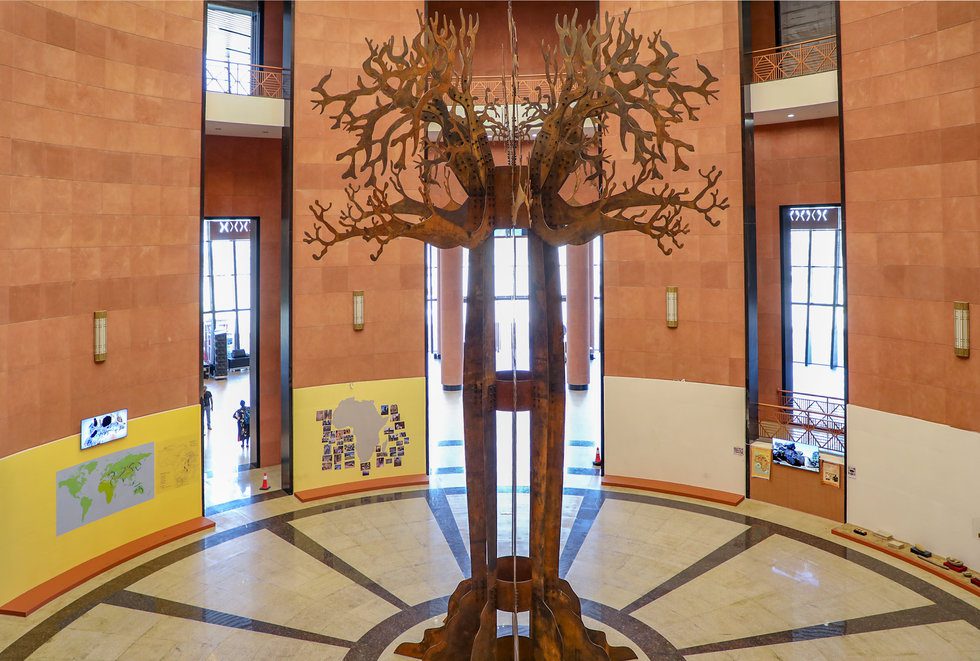 <figcaption> Interior view of the entrance hall at the new Museum of Black Civilizations in Dakar, Senegal. Courtesy of the Museum of Black Civilization