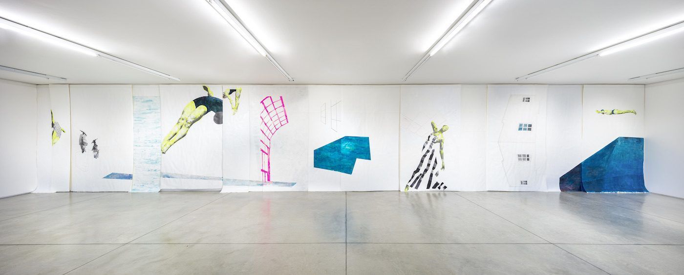 For me, the bird iconography grows even more fascinating as amanze imagines birds as counterparts to swimming pools, mashing up swimming pools and the sky and different water beings. “I’m over land,” she pronounces with a smile. “Land is so last season.” Birds are capable of transgressing land/sea boundaries as they travel through the sky. “I am learning of so many different cultures with their own water mythologies,” she says, adding in that her mother is from River State, Nigeria. amanze loves to be submersed in water – a desire I share with her – and appreciates its boundless, free-flowing nature, and all of the memory, trauma, pleasure, and possibility it holds. Her collages mirror water’s fluidity and its infinite possibilities.
