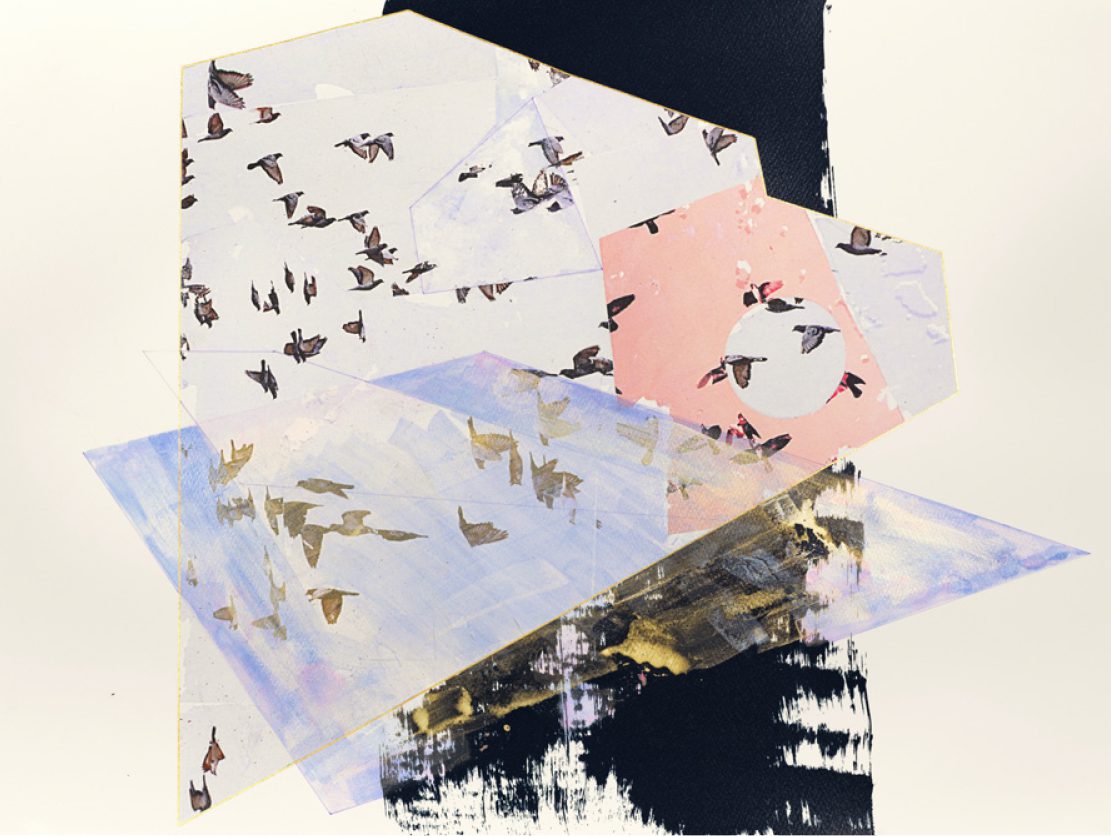 Birds abound in amanze’s drawings, including the “bird dances” that appear as collages in her artist edition with C&. She is beginning to show her “cutup sky-mashups” featuring birds more often. Before they lived on postcards and sketchbooks; now they are one of the remaining elements in her drawings. “Why birds?” I inquire. “The birds were originally a reference to pidgin-English in Nigeria,” she explains. “I always appreciate any creole language and how creative people are with words.” Playing with pigeon/pidgin, amanze remixes her cultural experiences, which span Nigeria, the UK, and US cities such as Philadelphia and Brooklyn, among other places. amanze is intimately aware of pidgin-English as a unifying language for those with different cultural backgrounds: “chopped up, free-flowing language that brings everyone together.” Like those who speak creolized languages, birds have their own paths of migration, movement, and travel. “Pigeons are a pervasive species,” amanze says. She hopes to imbue the birds she draws with a sense of freedom to take up space. The birds are not immobilized on the paper because they are able to roam different parts of it as amanze cuts up the paper and refashions it into new designs.