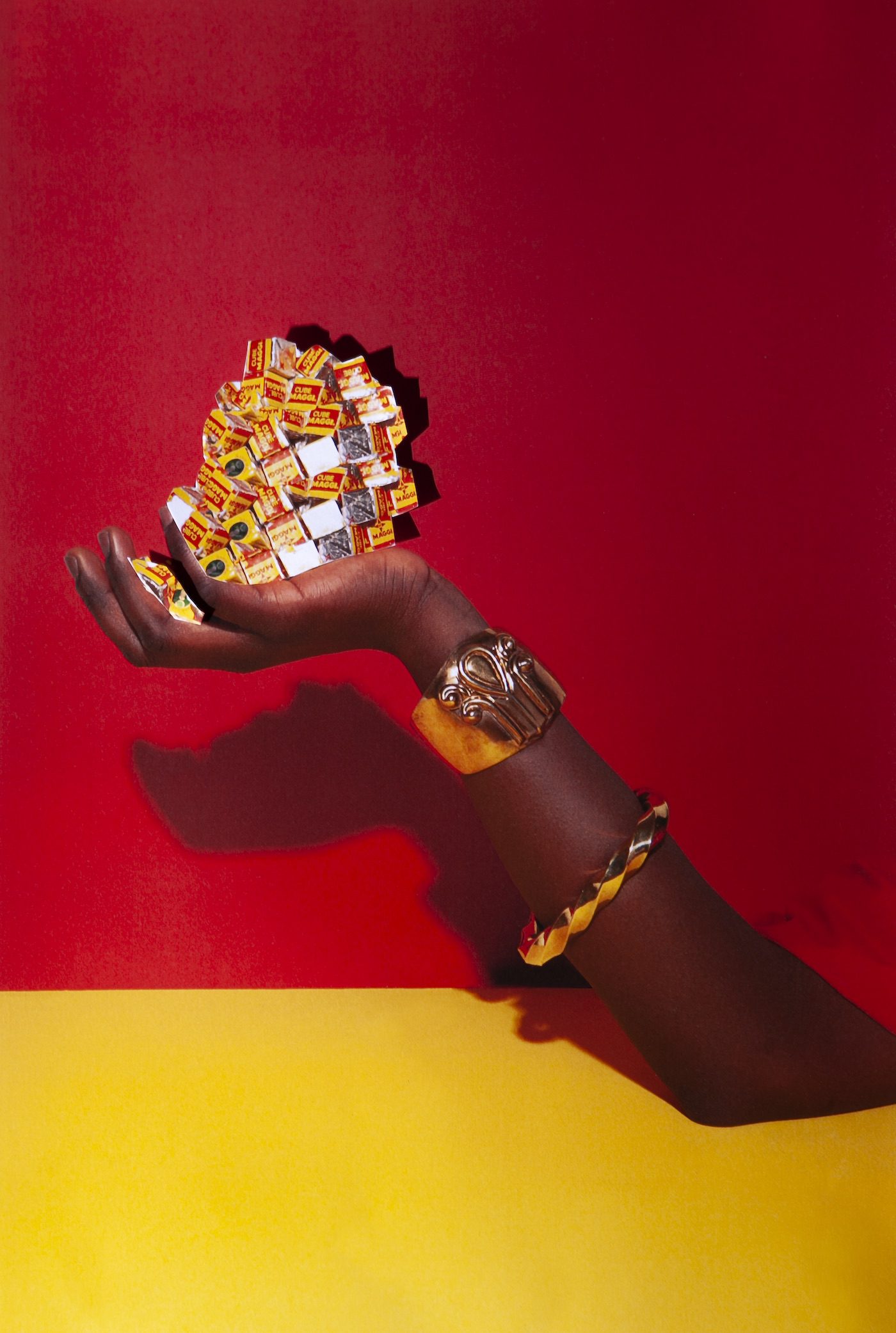 My images repurpose the hunger-inducing reds and yellows used by brands such as Maggi and Jumbo, while their compositions reference master photographers like Malick Sidibé and Seydou Keita. Combining the visual languages of food advertising and portraiture was also a way to highlight how the contemporary art economy often reduces the visual cultures of West Africa into a singular “style” – reflecting the same consumerist attitude of branding strategies toward culture. Here, a banal product such as the stock cube becomes a vehicle for a multi-layered discussion.
