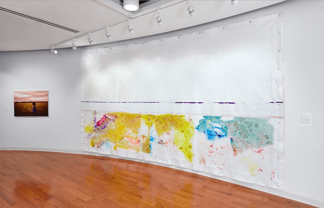 Installation view, Amalivaca, from the series, Wanderer, 2012, by Khadija Benn (left) and White: Crossing, 2017, by Arlington Weithers (right) at Caribbean Cultural Center African Diaspora Institute in Harlem, New York. Photo: Argenis Apolinario.