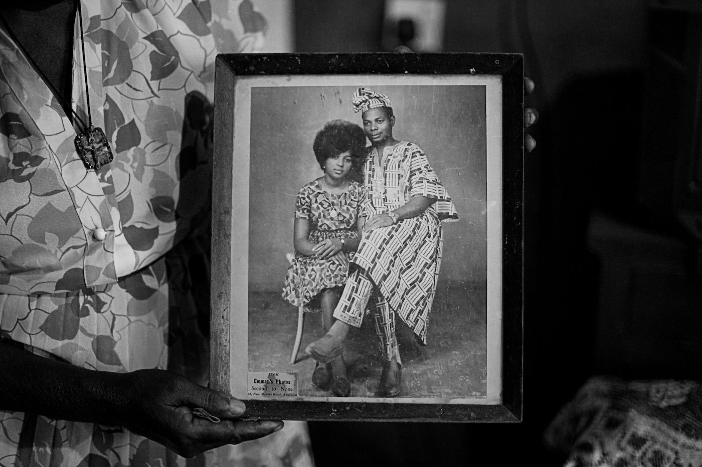 <figcaption> Nneka Iwunna Ezemezue, Theresa. Courtesy of the artist. "I was the first wife of my late husband and this is the only picture I have left to remember him. The second wife burnt all the other pictures. She had the support of the villagers because she carried out the traditional mourning rites. My refusal to do it led to my being frustrated out of my late husband's house with nothing."