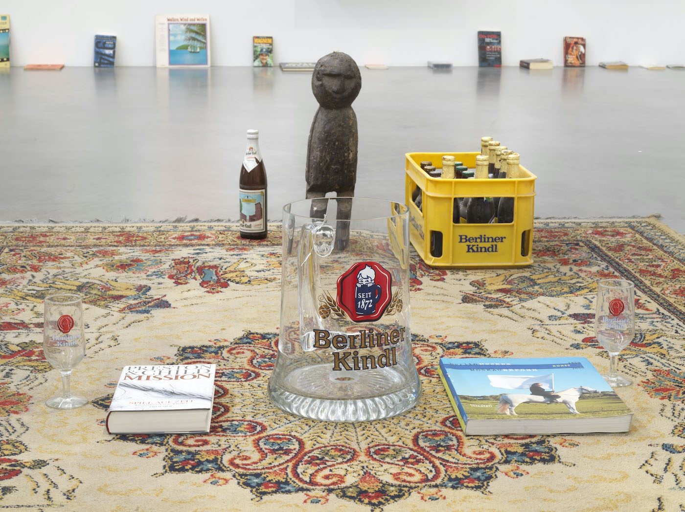 Adéagbo’s installations are always site-specific and dissolve hierarchies: all things are of equal importance to him. In his work, phenomena from pop culture transport stories just as much as canonised high culture: antiques from Benin can be found alongside “airport kitsch”, records by Beethoven alongside carnival music, commissioned oil paintings alongside reproductions from art history.