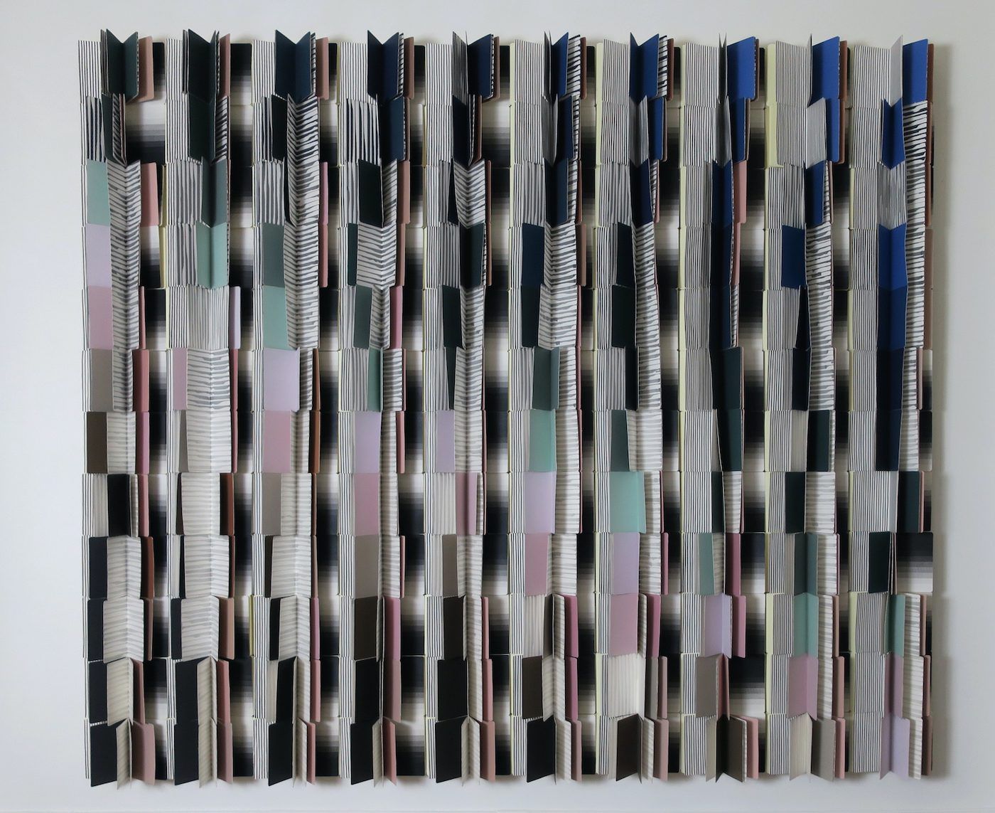 <span lang="FR">Quand je suis arrivée aux Beaux-Arts, étant autodidacte avec une approche assez classique, j’étais plus intéressée par l’aspect conceptuel de l’art. Sauf qu’à l’époque, il y avait peu d’artistes d’origine du Maghreb dans l’école et mes maîtres d’ateliers ont tout de suite voulu m’orienter vers la calligraphie, ce qui a suscité une réaction de rejet chez moi. J’ai alors choisi de faire les choses à rebours en déconstruisant mon rapport à l’écriture pour aller vers une autre matérialité du langage. Avant d’arriver en France, j’avais fait un premier cycle en design dont un an de calligraphie. Ce qui m’avait tout de suite intéressée, plutôt que la beauté plastique, c’était cette idée de rigueur dans la répétition qui crée une forme d’écho, de métageste. C’est ce que l’on retrouve dans mes œuvres Carnets où cette non-signification du geste calligraphique crée un vocabulaire propre.</span>
