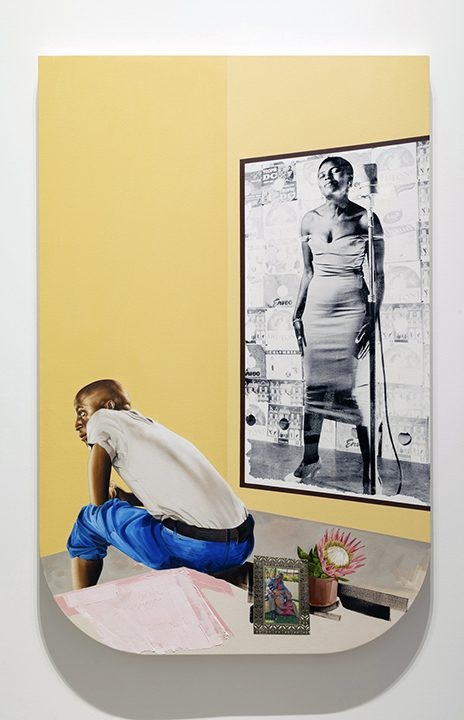 Secondly, the specificities of the images, compositions, and histories that my paintings engage with actively try to stay away from overt encounters with race discourse. The primary reason for this, which is more strategic than anything else, is that the continued fascination with race and Blackness in the fine arts and beyond has produced a peculiar effect, namely that the image of the Black subject within any narrative trope is always overcome by the politics of Blackness. It seems virtually impossible for the Black subject in any narrative to exist as just a subject, without a viewer projecting histories, metaphors, and metonyms connected to Blackness. These limitations obscure important specificities about the lived experiences of any given Black subject, and perpetuate the binaries and politics through which Blackness is produced and situated. So my strategies of engaging with the Black subject (and here I should acknowledge that I am referring to Blackness in the African context and not to African Americans) is important to me because it is a way of figuring out the extent to which it is possible to delay projecting essentializing history, metaphors, and metonyms onto representation of the Black subject, therefore allowing for an alternative abstraction of the subject within any given narrative.