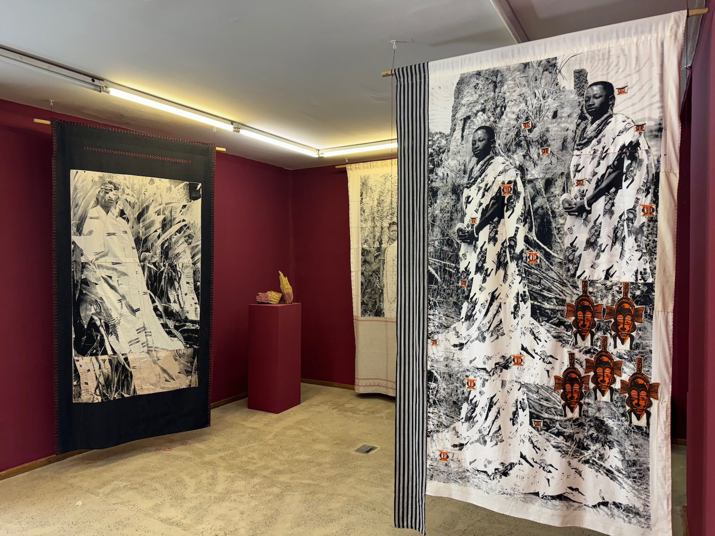 Julia Grosse: You just had a solo show in Dakar at Raw Material Company called WITH EVERY FIBER OF (MY) BEING, and I liked this detail in the press release: “Like a jigsaw puzzle, she recomposes her personal history, interweaving pieces of traditional fabric with family archives collected and engraved or silk-screened on canvas.” Why does physically working with fabric have such an impact on your practice?