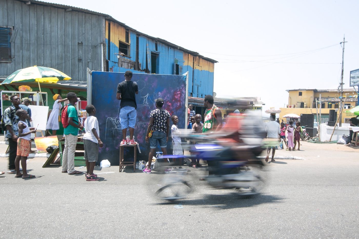Until quite recently art was typically a marginalized discipline in Ghana. It was therefore critical to create cohesion in the form of a movement. So, as far as access, it only made sense to take the art to the streets where anyone and everyone could participate in its appreciation and consumption. James Town was an obvious choice because of its history and its apparent state of decay. AccraDotAlt wanted to draw attention toward the hidden beauty, resilience, heritage, and spiritual potency of this part of town and share it with everyone willing to embrace it.