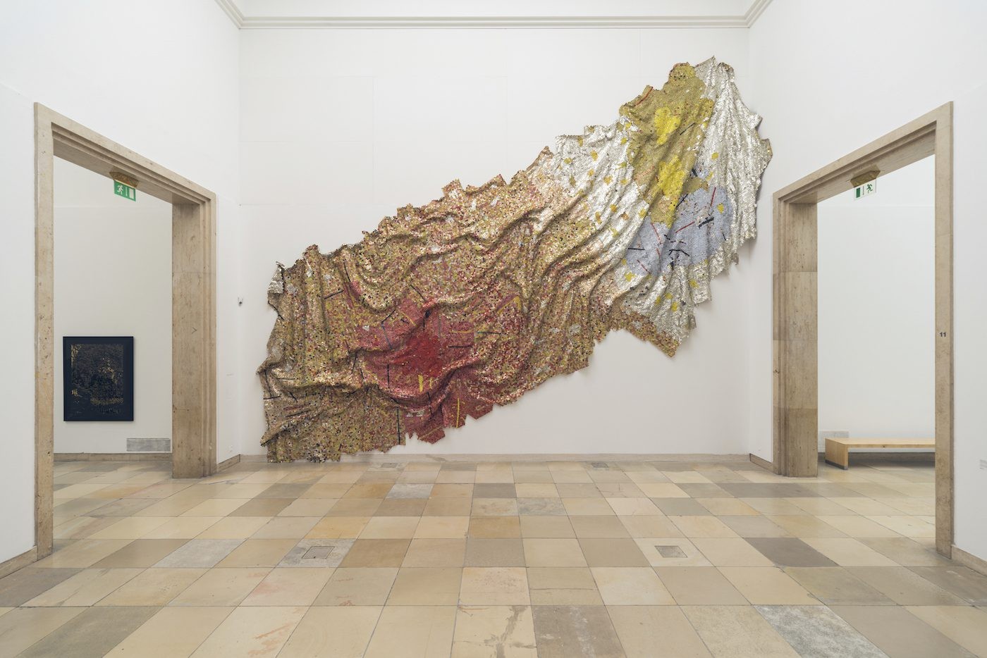 El Anatsui, Earth’s Skin, 2019. Installation view Haus der Kunst. Photo: Maximilian Geuter