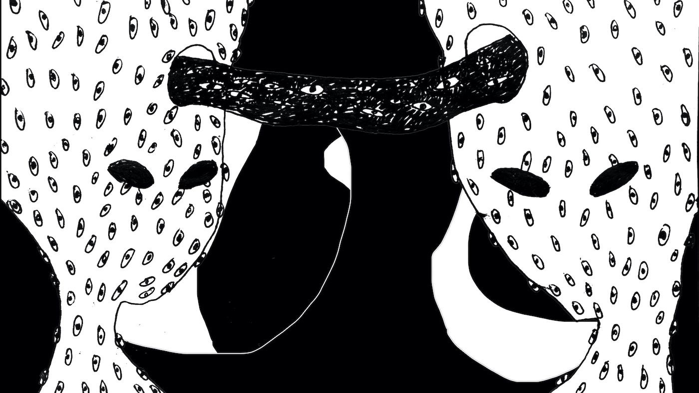 NO : Je crois que ce que je veux réellement exprimer, c'est l'idée d’un moi pluriel et non singulier. Je pense qu’il est important de réussir à devenir intime avec les nombreux moi de la psyché qui composent une personnalité plutôt que de s'attacher à une partie ou une autre. J'ai également réalisé un bon nombre d'œuvres (masques, sculptures molles, dessins performés) qui ont pour sujet et/ou pour vocation de communiquer avec les ancêtres, la terre et d'autres présences immatérielles à travers le temps. La façon dont je dessine le corps a changé depuis que j'ai commencé à réaliser des collages numériques. Je réfléchis constamment au corps à une échelle à la fois cosmique et microscopique. L'un des motifs récurrents dans mes dessins est formé d'un point entouré d'un cercle. Il symbolise pour moi plusieurs choses : un œil, une cellule unique, un corps planétaire avec un anneau orbital, un microbe, une conscience auto-organisée dans l'espace, un quanta et son champ. J'utilise ce motif et je construis des paysages et des figures de sorte que la forme se compose d'autant de petits yeux de cellule. Je souhaite m'éloigner de la représentation d'une personne comme individu, comme organisme unique et autonome. Je voudrais que les dessins transmettent ces relations plus étendues, symbiotiques, constitutives du moi.