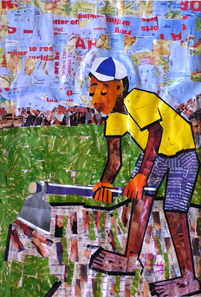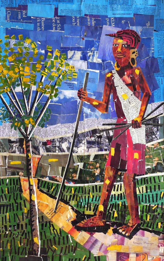 Karuga is a significant link between the past and future of women artists in East Africa today. She is also a respected innovator who dared to branch out and break new ground with her art, hence paving new pathways for others. Using the easily accessible material of newspapers and magazines, Karuga has over the years developed an approach to collage that at the time was unique in East Africa. Her images harness both extraordinary detail and charming simplicity.