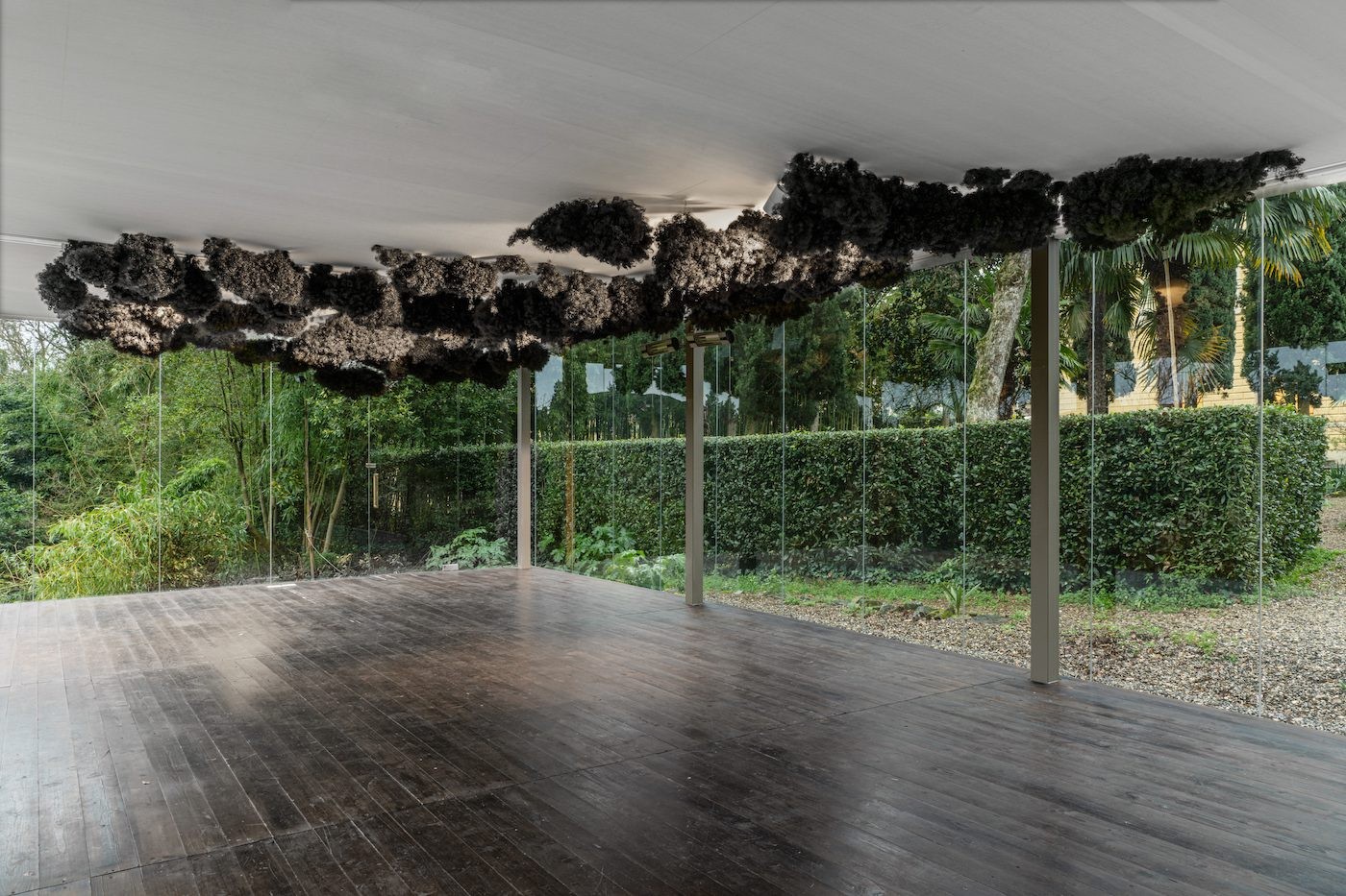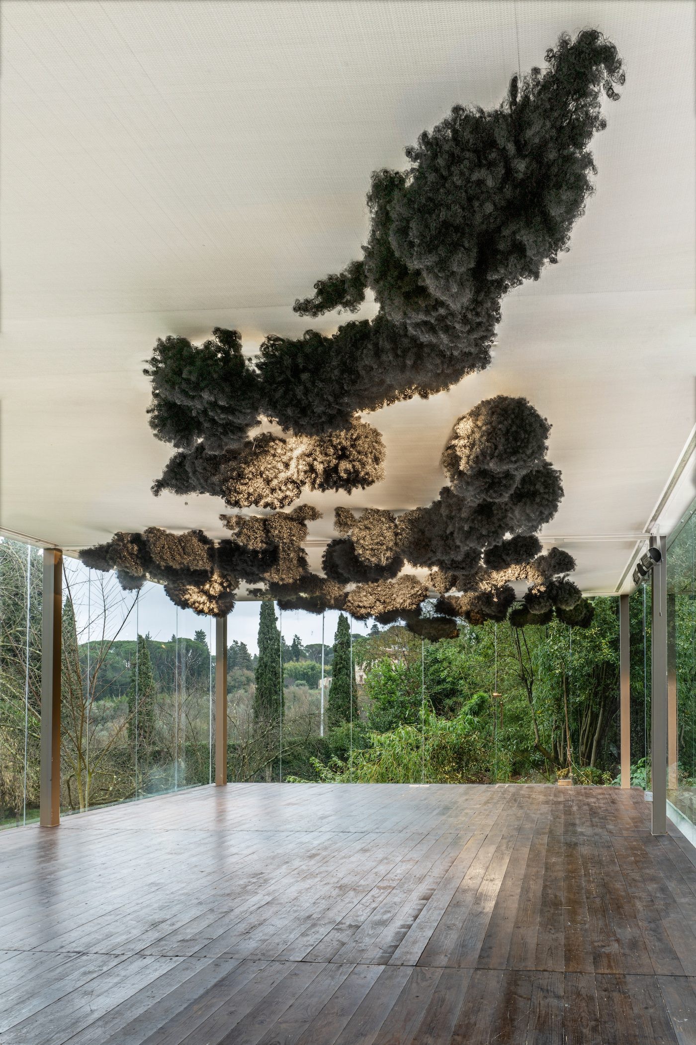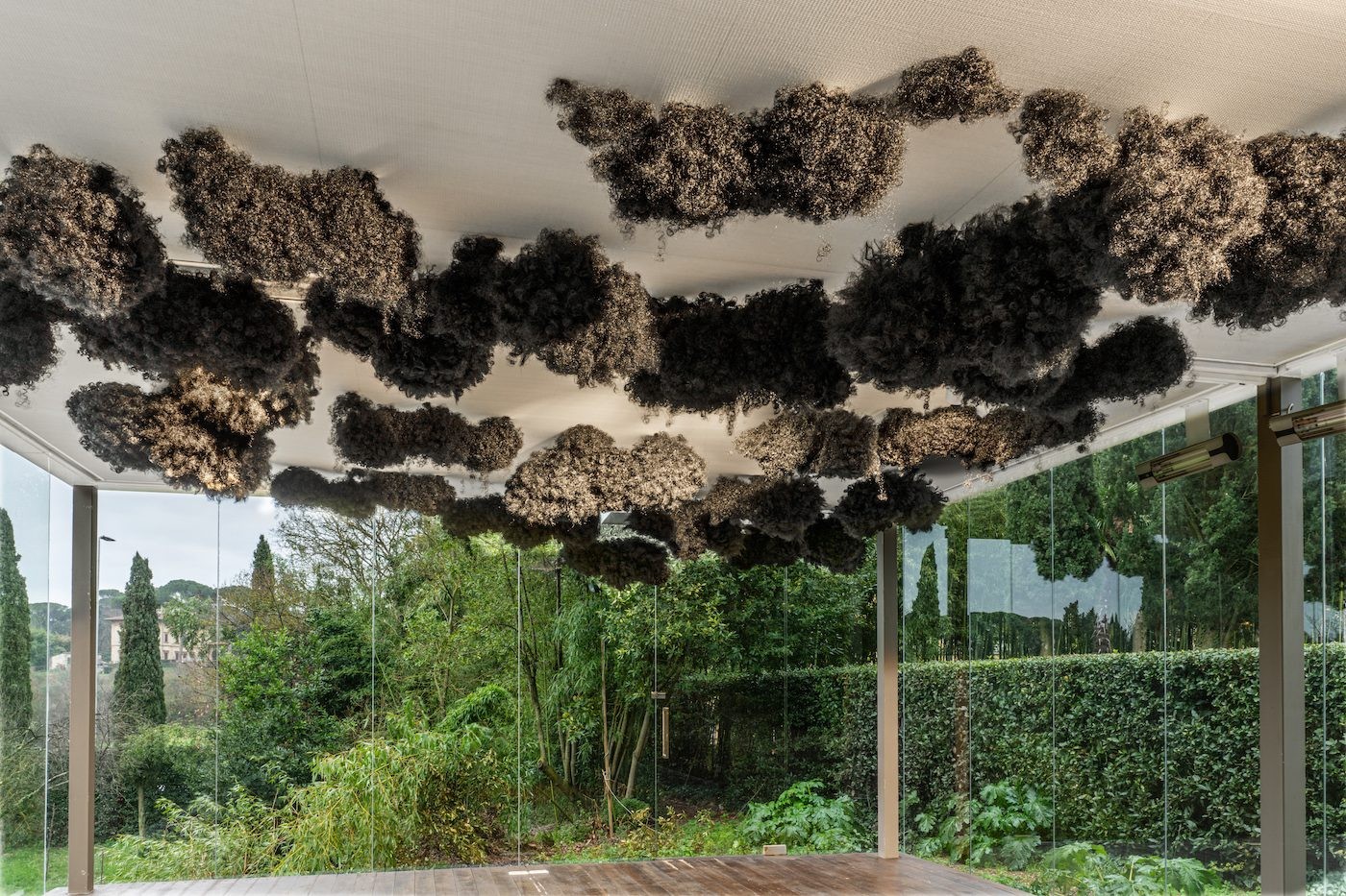 “Suspended, soft, tender, Clouds (2019) linger in the room ever-present, delicate and overwhelmingly powerful. Full in the weight, the silence of the space they hold collectively is un-ignorable. Hair holds the DNA of a person, of a people. The remains, the cut parts, the fragments are weighty in their evidence. There is lightness and simultaneously a power, a deep burden of proof. In a world on fire Barrett´s work consistently holds the space for the violently erased. Rain-filled clouds; a life-giving potential or smoke bearing the weight of the past, Barrett´s work, is a black space. A space beyond time, beyond past and present. A collective and individual space that is shape shifting and fluid.” (Text: What the hELL she doin! collective)
