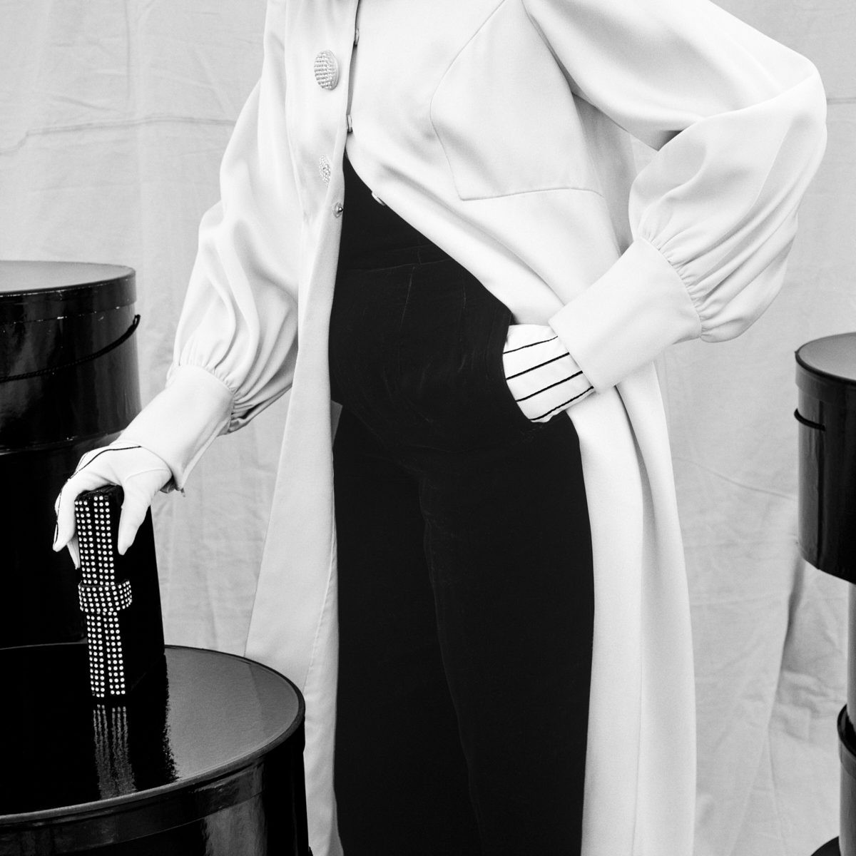 DC: There is usually a ton of dialogue before the shoot, and she is a great participant. Our process always starts with a hat. For example, she would pull out a hat, and I would say, “Oh this makes me think of a Southern Spanish bride of the late 1800s,” and walk up to her wardrobe and choose clothes that felt like that and told that story. It can take us days or weeks to compose one outfit. She is particularly in love with the 1950s—she prefers hemlines just below the knee, no major ball gowns, nothing too short, nothing too sexy. She is also a swing dancer, so she has to be able to move around in it.