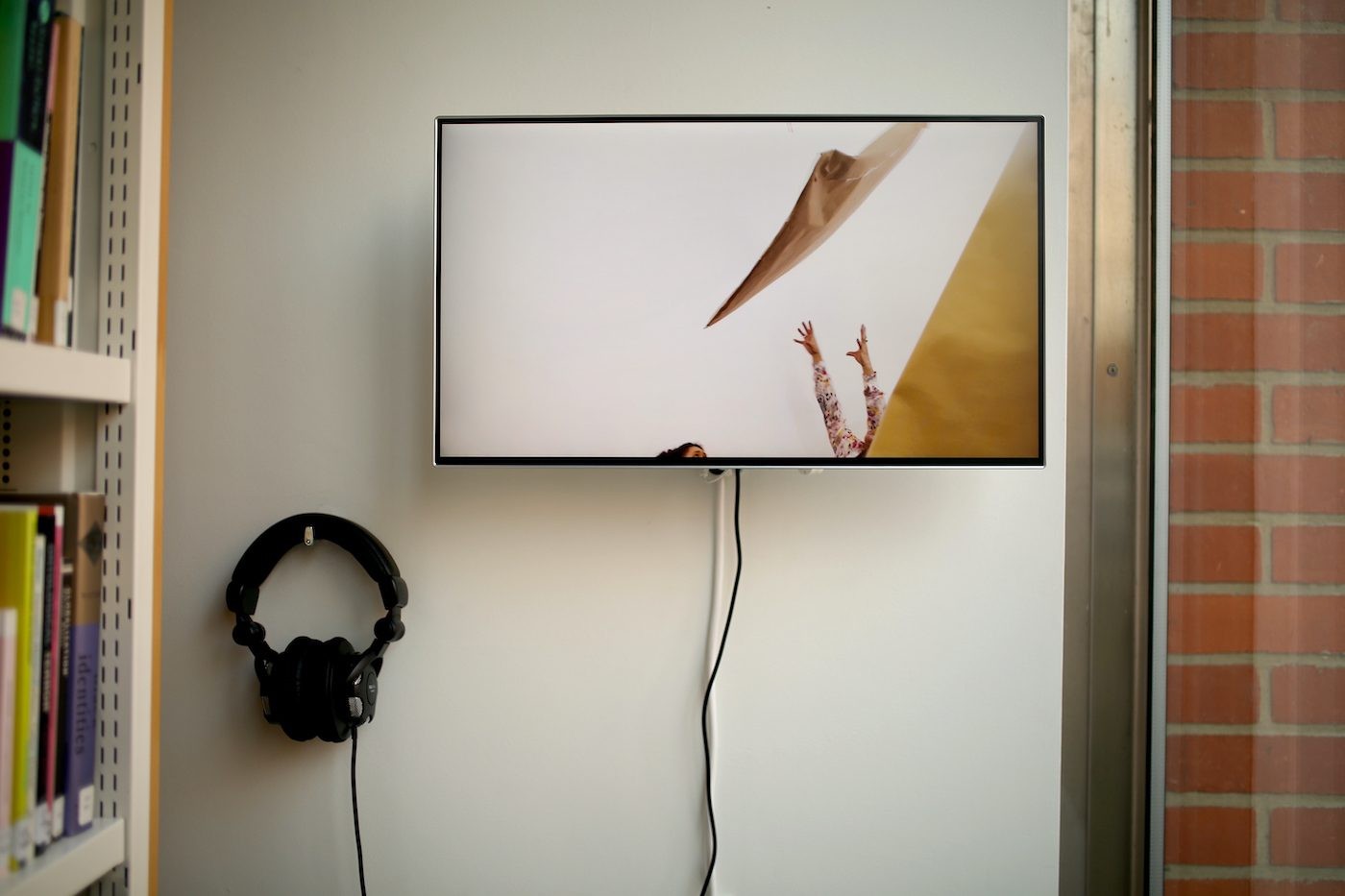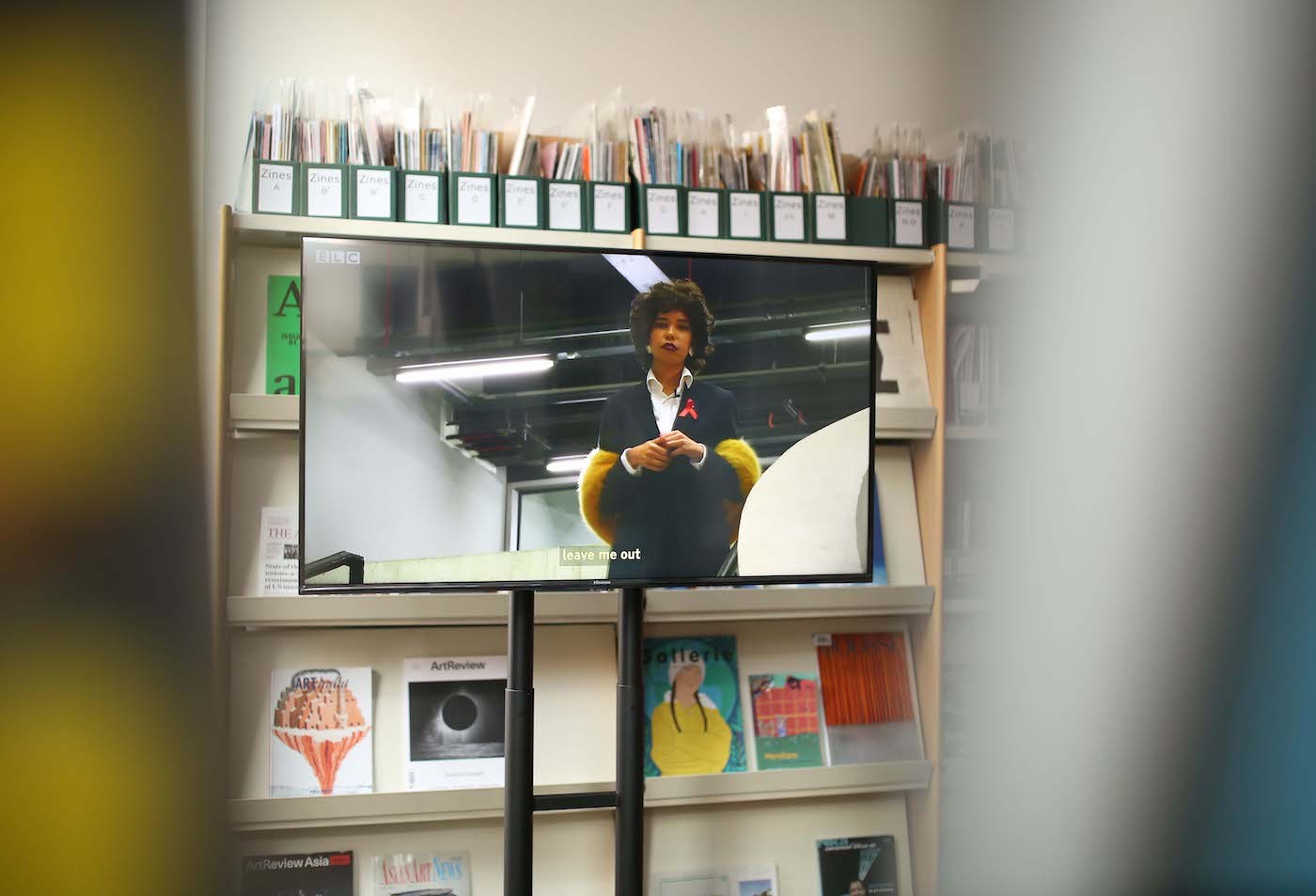 TAF: Uddoh’s works are displayed on screens around the Stuart Hall Library. Exhibiting videos within a library environment felt sacrilegious. Uddoh was especially interested in showing them in a space that is supposed to be quiet in order to read or study, an environment in which knowledge can be acquired, disseminated, and developed.