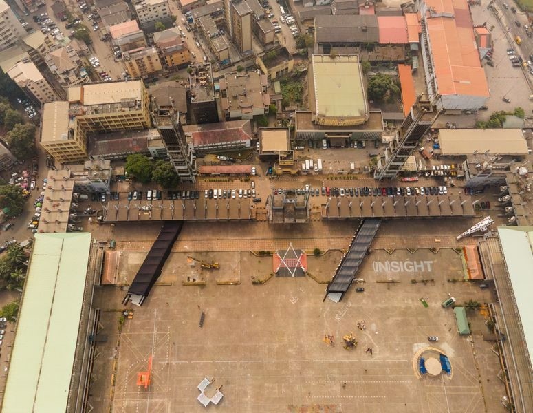 Aerial view of the Shadow Pavilions. Lagos Biennial 3 - 10 February 2024, Courtesy of Lagos Biennial.