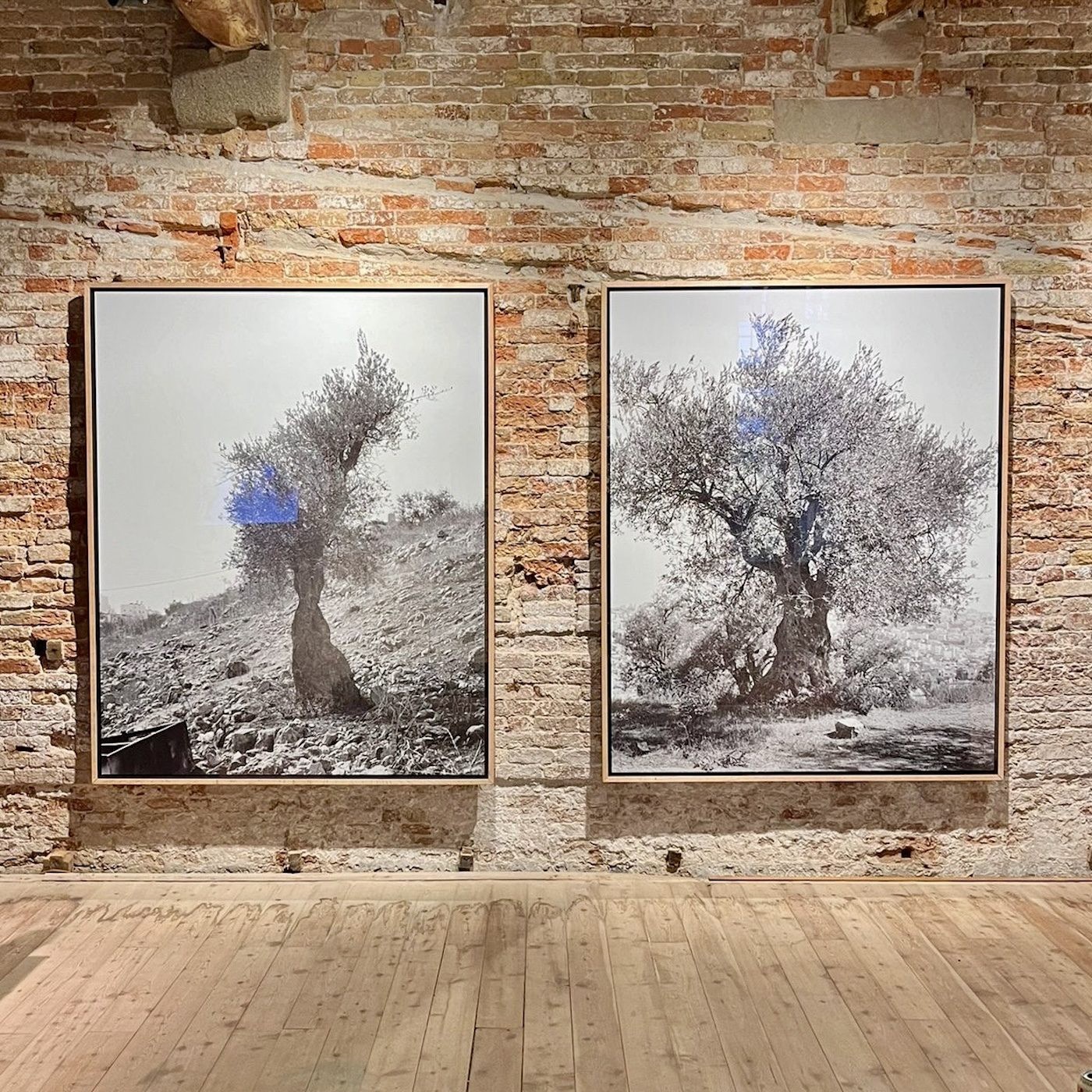 A celebration of Indigenous growing and gathering practices finds a place in the South West Bank exhibition, which emerges from the cultural and political work of further uncomfortable formations: Artists + Allies x Hebron (AAH), compelled by activist Issa Amro and artist Adam Broomberg, and Bethlehem’s Dar Jacir for Art and Research. Videos highlight participatory practices and community-driven workshops at Dar Jacir, contrasted with images from the ongoing AAH series Anchor in the Landscape, of burned olive trees in front of Israel’s separation wall. Among other artworks, Jumana Manna’s film Foragers explores the custom of foraging for wild edible plants and the resilience needed to do so due to Israel’s prohibitive “nature protection” laws.