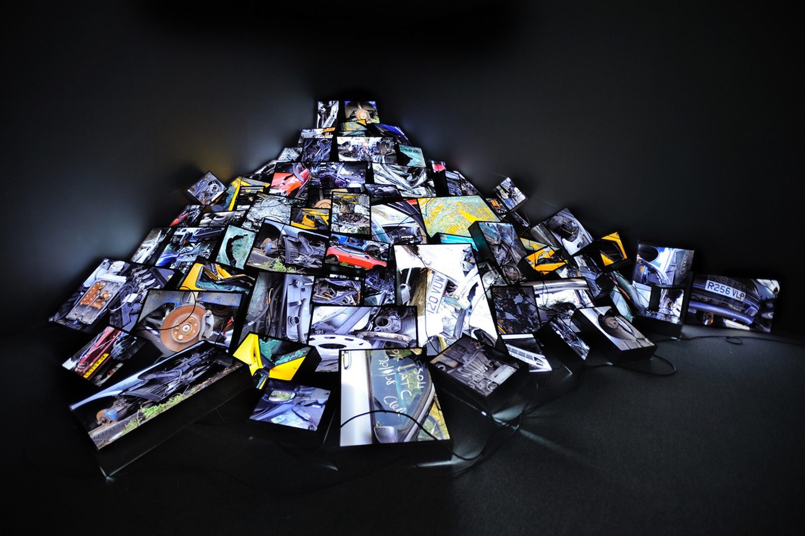 Milliard: Floating Coffins is also part of a history of shifts. Each big piece that you make brings with it a whole new visual vocabulary. In this piece, there are fourteen screens, exposed cables. You really pushed the installation format. You also pushed the relationship between film and still image.