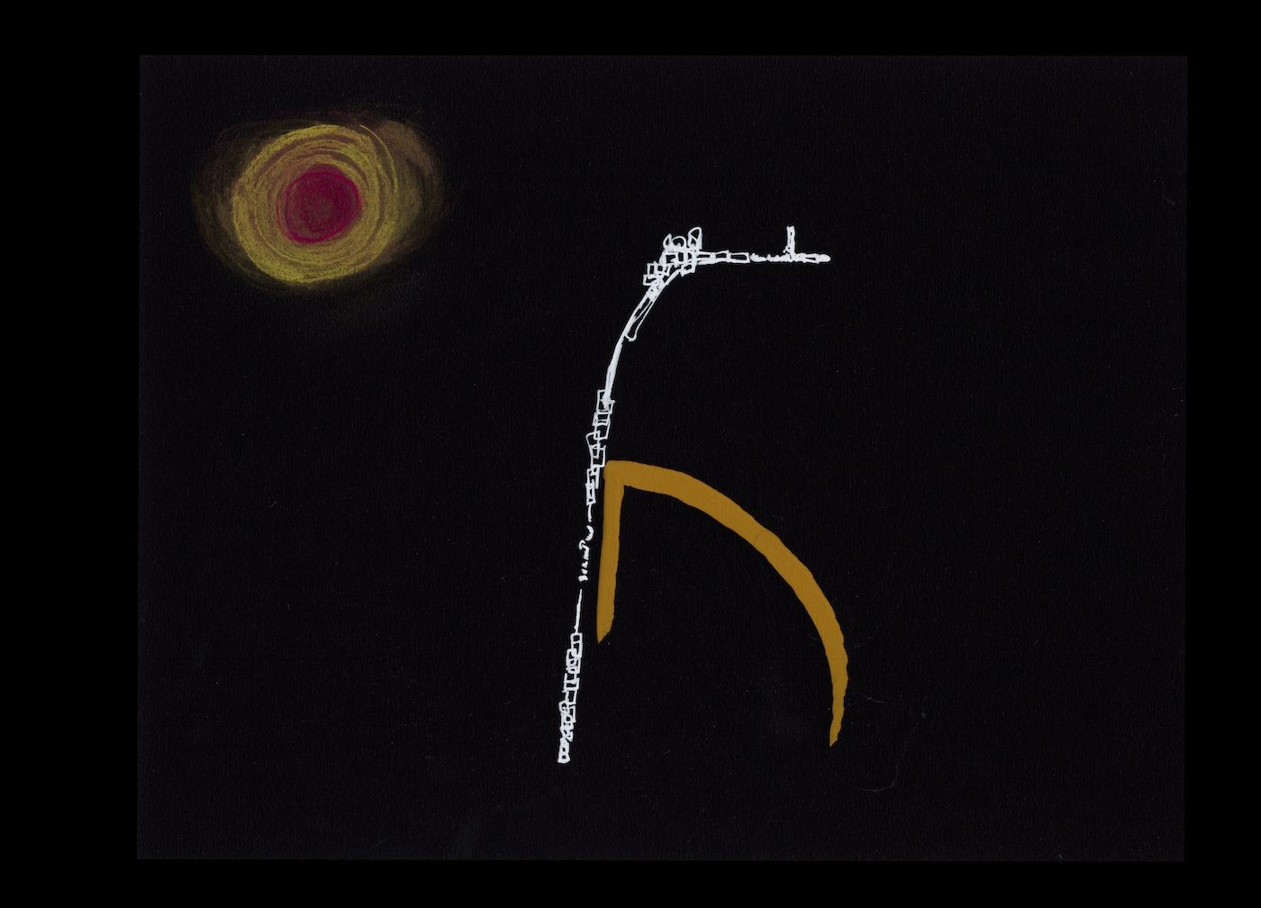 The line and the grid become a tool of resistance, a place to embody subjectivity through negotiating differentiated notions of intimacy, touch, and the sensate—a queering of the line, if you will. Often called “asemic writing,” her drawings carry deeply codified linguistic patterns for the reader to interpret. Drawing on parallels from the ancient Andean textile language of quipu, she signals to artists like Cecilia Vicūna and Gego.
