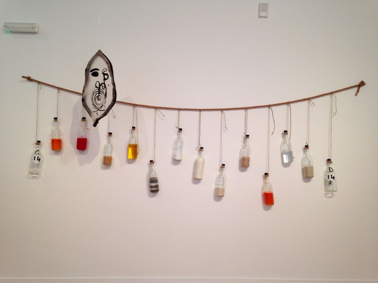 <figcaption> Otobong Nkanga, installation view Carved to Flow (2017). Laboratory installation and natural sop 08. Co-produces by Yanghyun Foundation, Seoul, and Ministerie van de Vlaamse Germeenschap, Departement Cultuur, Jeugd en Media, Brussels, Archimidous 15, Athens. documenta 14 in Athens, 2017