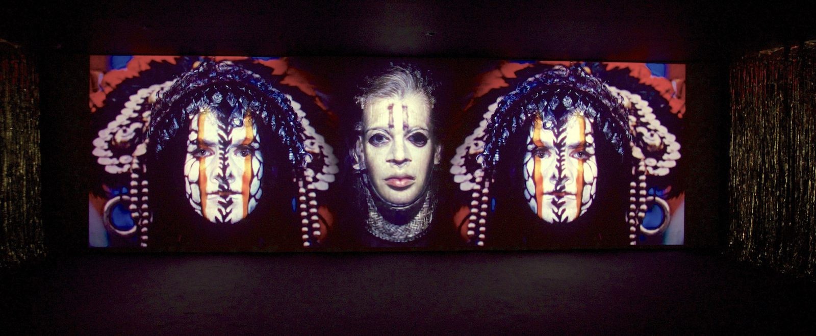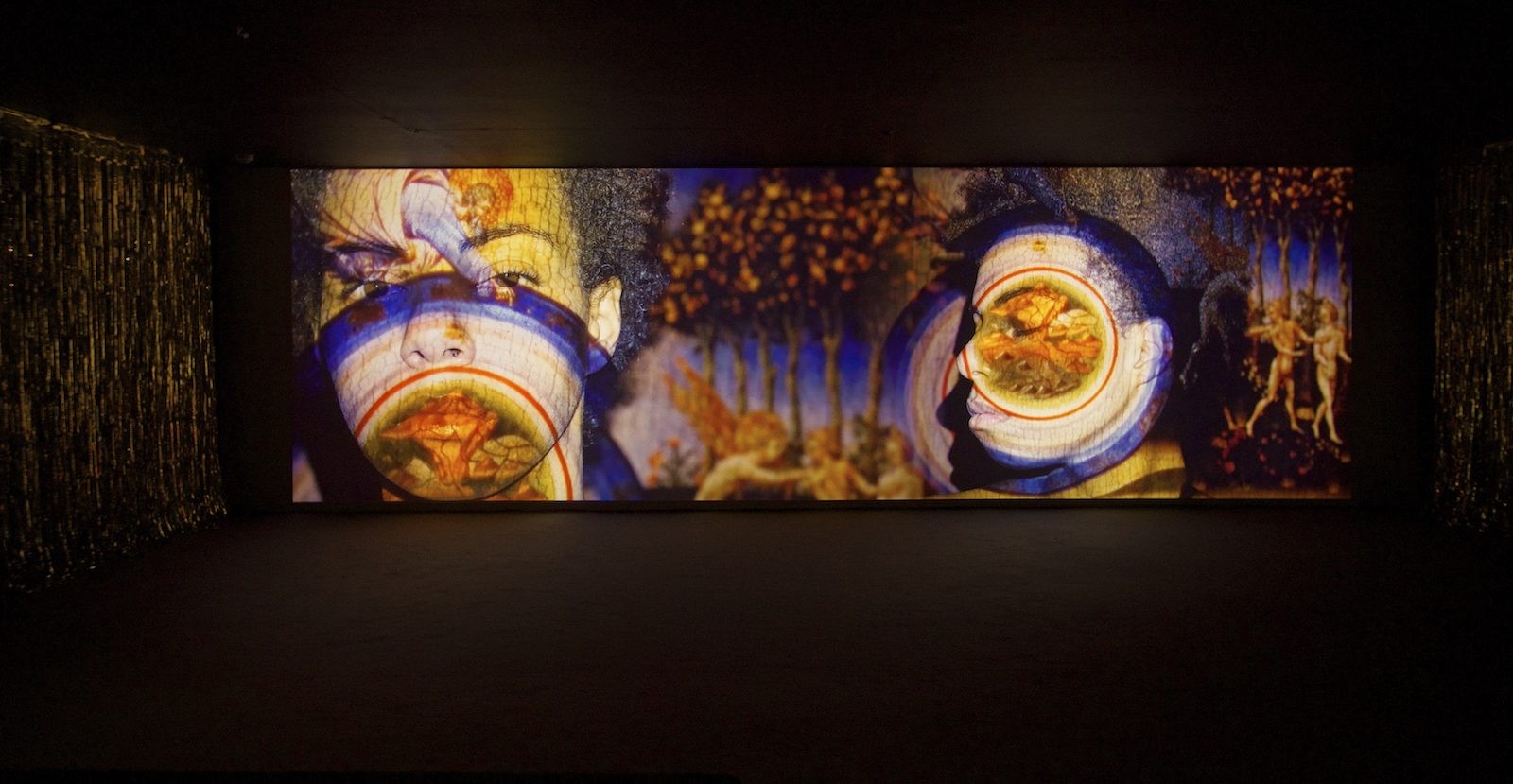 <figcaption> Theo Eshetu, Atlas Fractured (2017). Digital video, color, sound, 18 min.. documenta 14 Athens Conservatoire