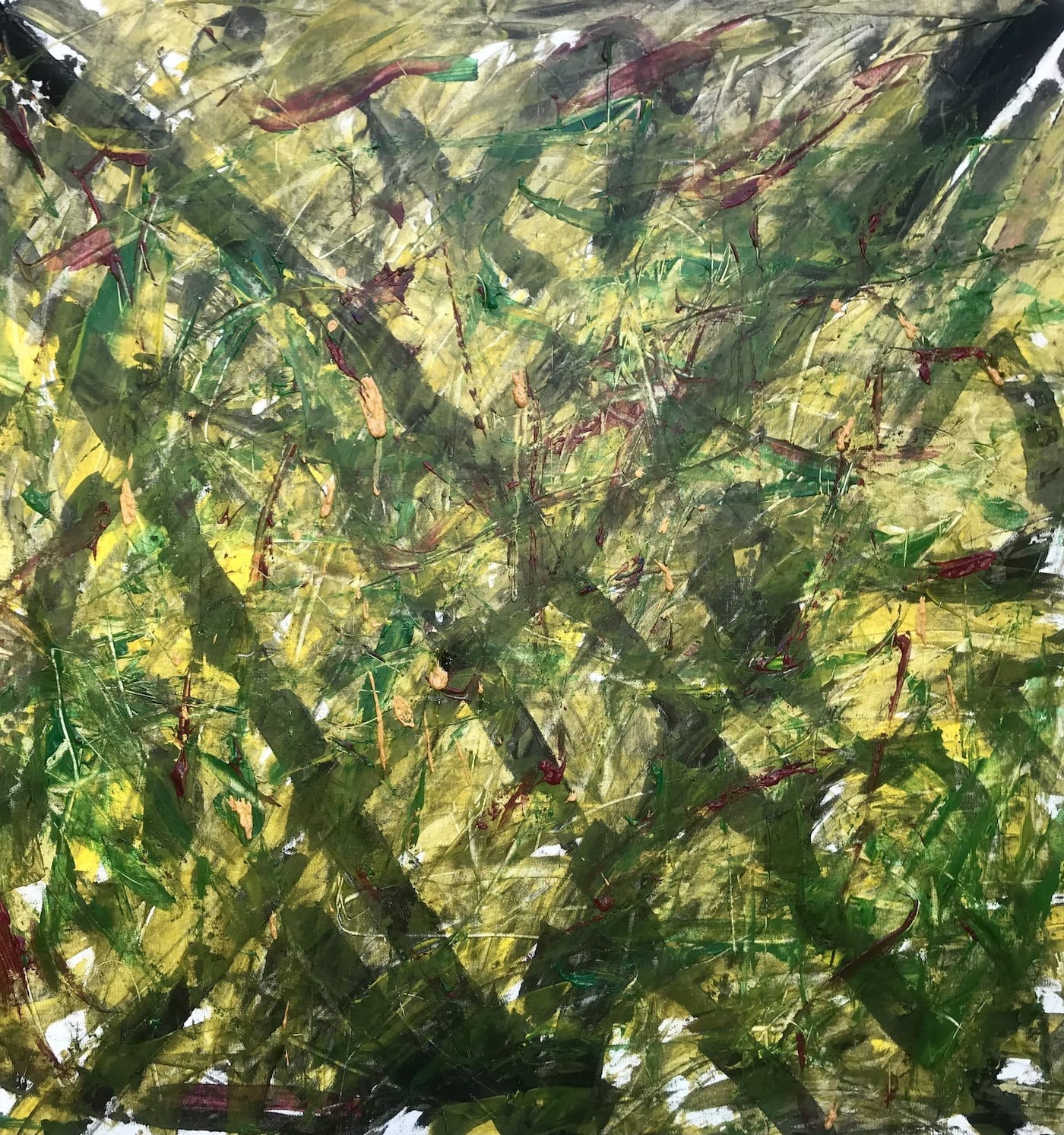 HE: After creating the sound art piece, I listened to it – going probably a little crazy listening to only that sound for three weeks. And after maybe the second week I started to respond. As for the paintings, first it was just strokes, gestural art and things like that. Quite improvised ways of using acrylic and charcoal and chalk and children’s paint. I would move, I would dance as I would hear things, I would use particular colors because I work with synesthesia as well.