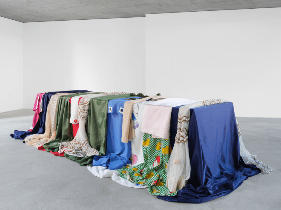 Wisrah C. V. da R. Celestino, Privacy, 2023, a set of curtains loaned from the artist’s family members, photo: Galerie Molitor, Berlin