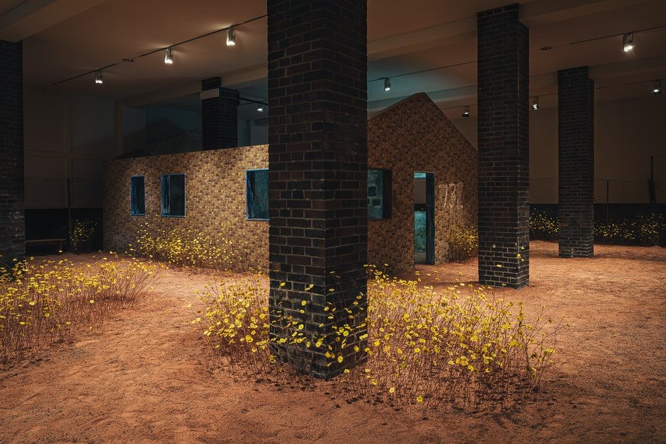 Helena Uambembe, installation view ZOLLAMT MMK, Blooming in Stasis: 25.8230° S, 23.5312° E, 2023 (detail), © Helena Uambembe