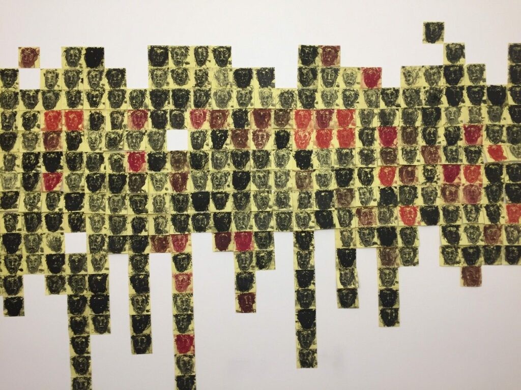 <figcaption> Admire Kumudzengerere, 'Being Here' (2016/2017), Monotype on sticky notes, image © Contemporary And