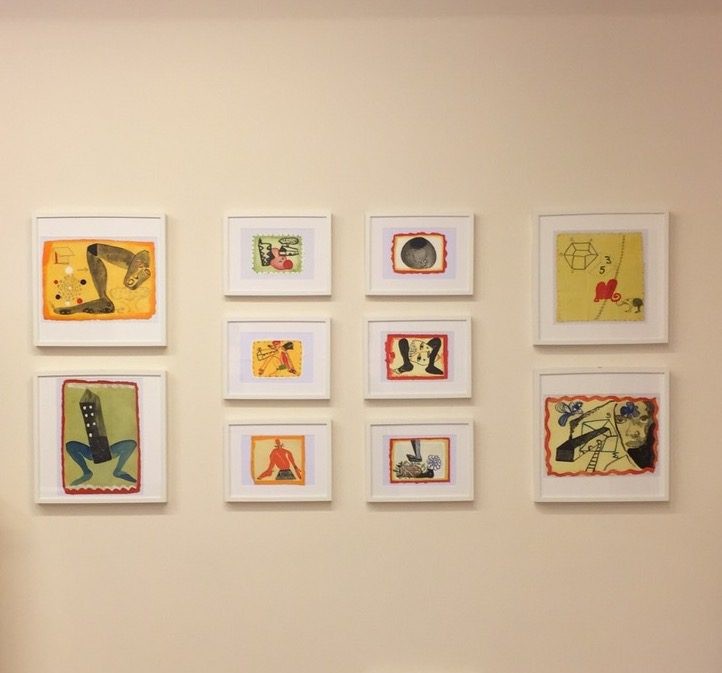 <figcaption> Admire Kumuzengerere, 'Kushaya Pekutarisa', 'Dova Kumesu Kwangu', 'Guruva Kumesu' 2017, monotype and silkscreen on paper, image © Contemporary And