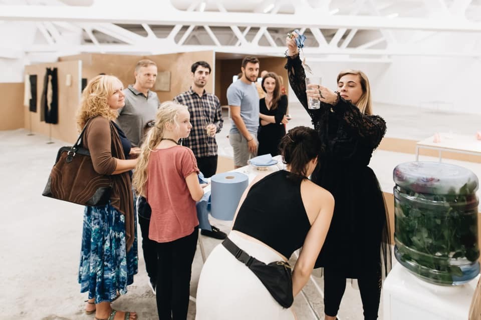 <figcaption> Sasha Ichim, Selfie, performance SISU, 13 09 2019, Kunsthalle Bega. Photo credit Sasha Ichim