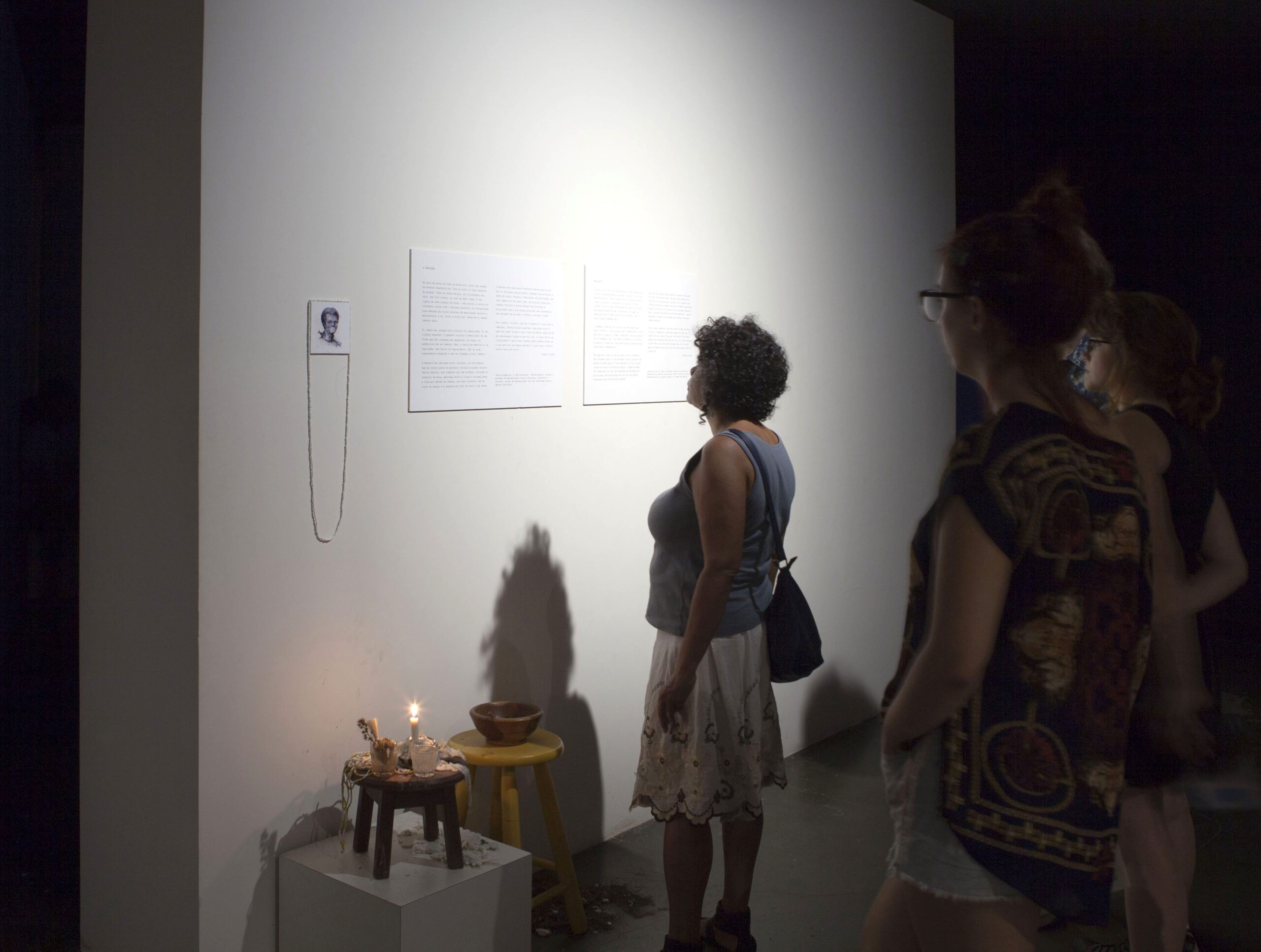 <figcaption> Installation view, The Desire Project, 2016, by Grada Kilomba, at the 32. Bienal de São Paulo. Photo: Leo Elon. Courtesy of the Bienal de São Paulo.