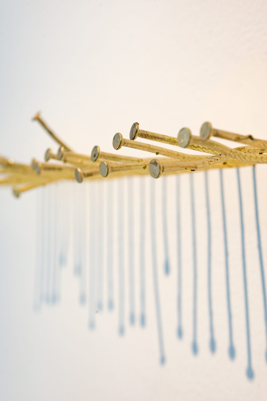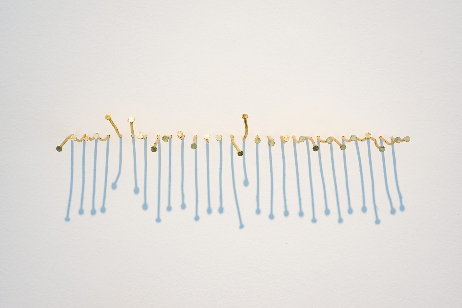 <figcaption> Malek Gnaoui, SC20/G.L 01 (Detail), 2020. Studs collected from construction sites brass-plated, 27 stud, Variable dimension. From Essaïda-Carthage series. Courtesy of Selma Feriani Gallery and the artist. Photo © Pol Guillard