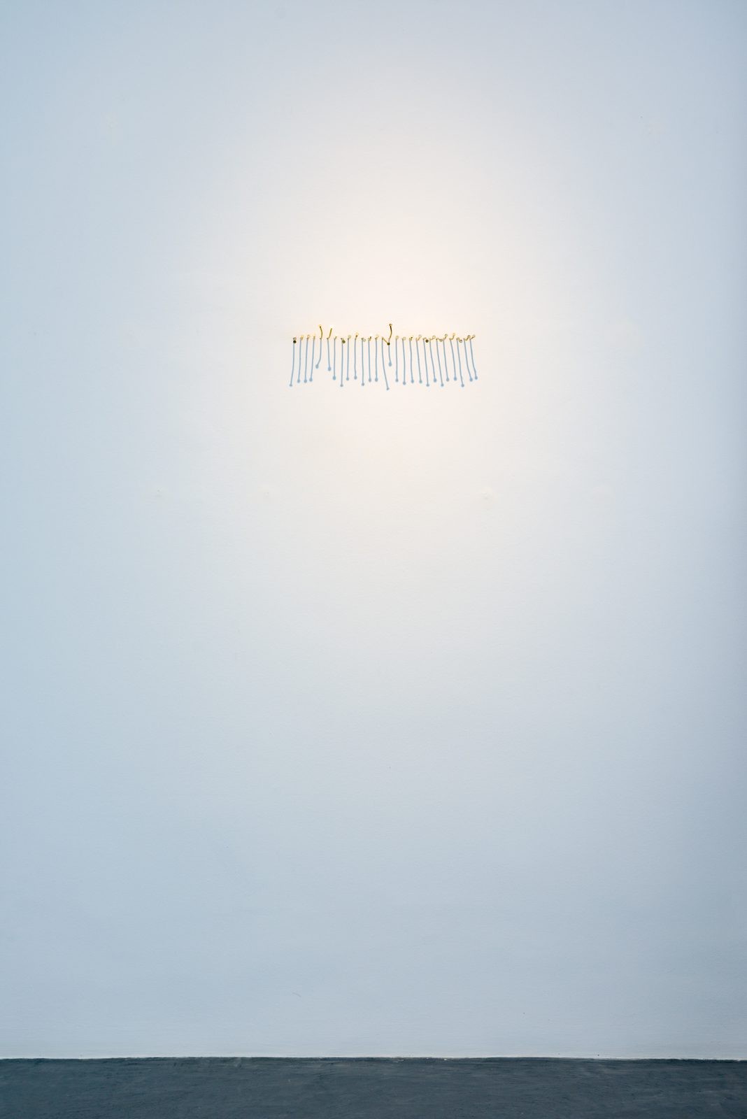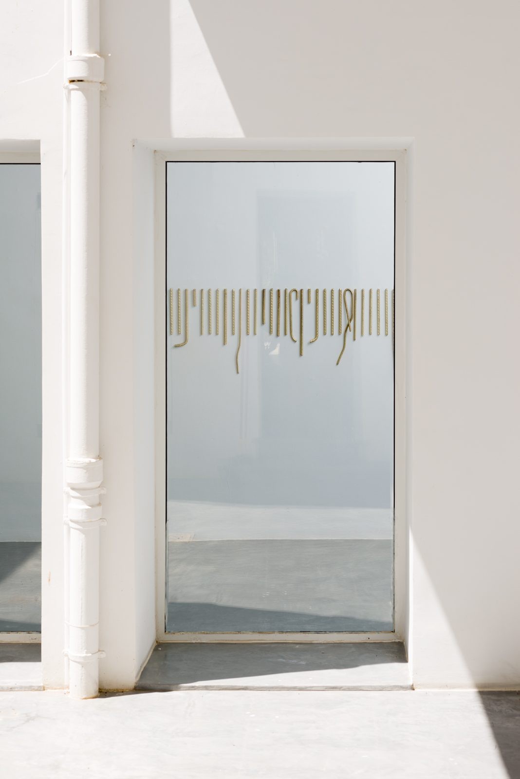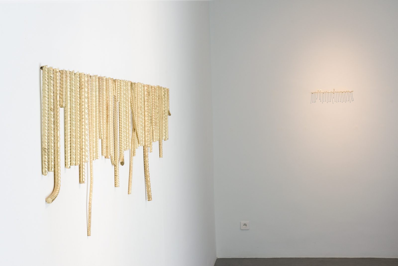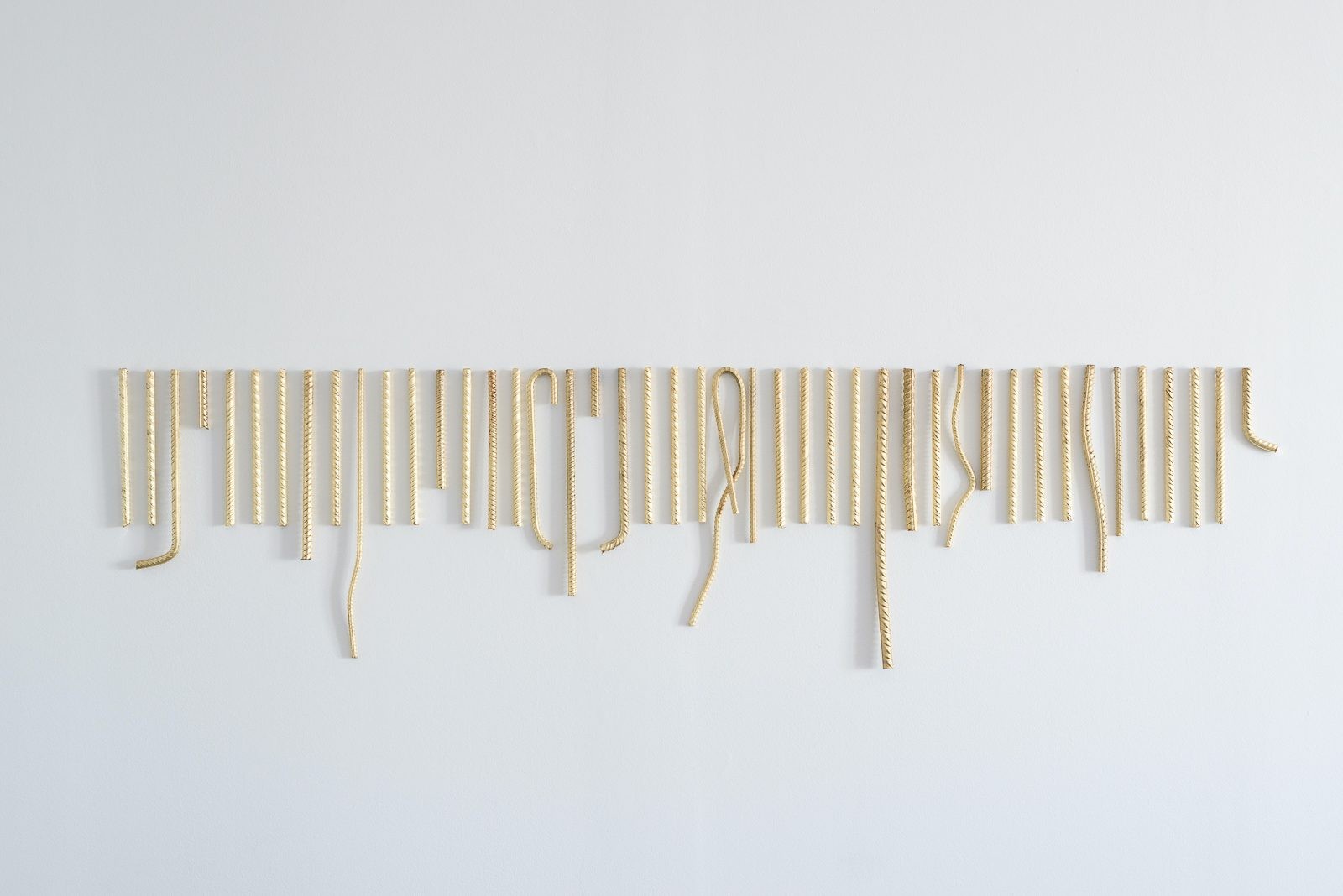 <figcaption> Malek Gnaoui, SC20/sparrow 01, 2020. Round-bars of anticipated reinforcement collected from roofs, brass plated, 47 Round bar, Variable dimension. From Essaïda-Carthage series. Courtesy of Selma Feriani Gallery and the artist. Photo © Pol Guillard