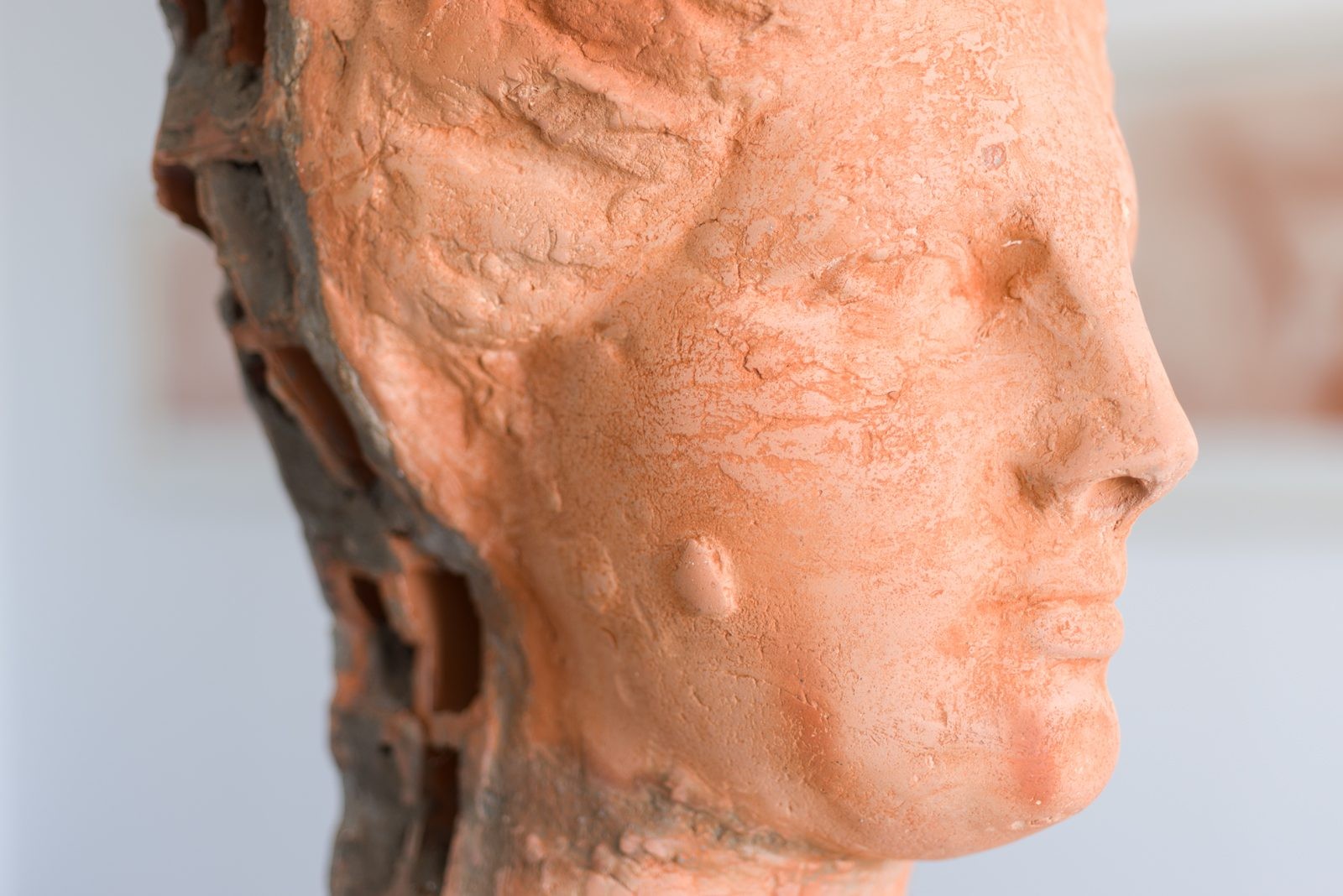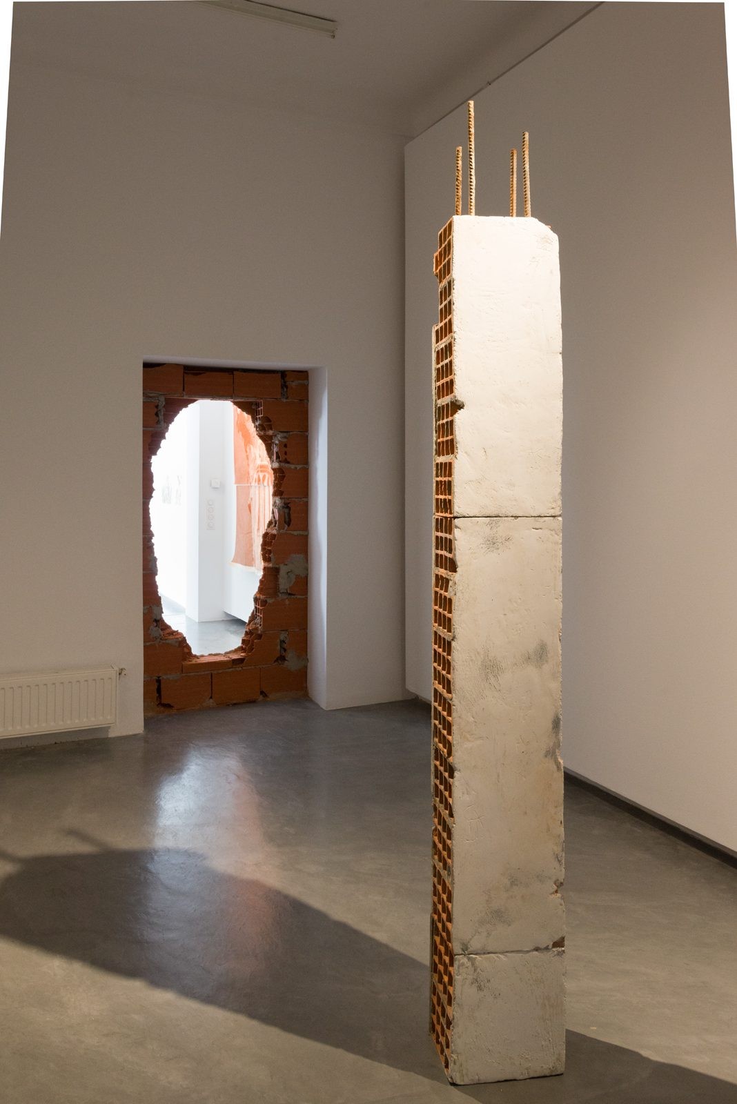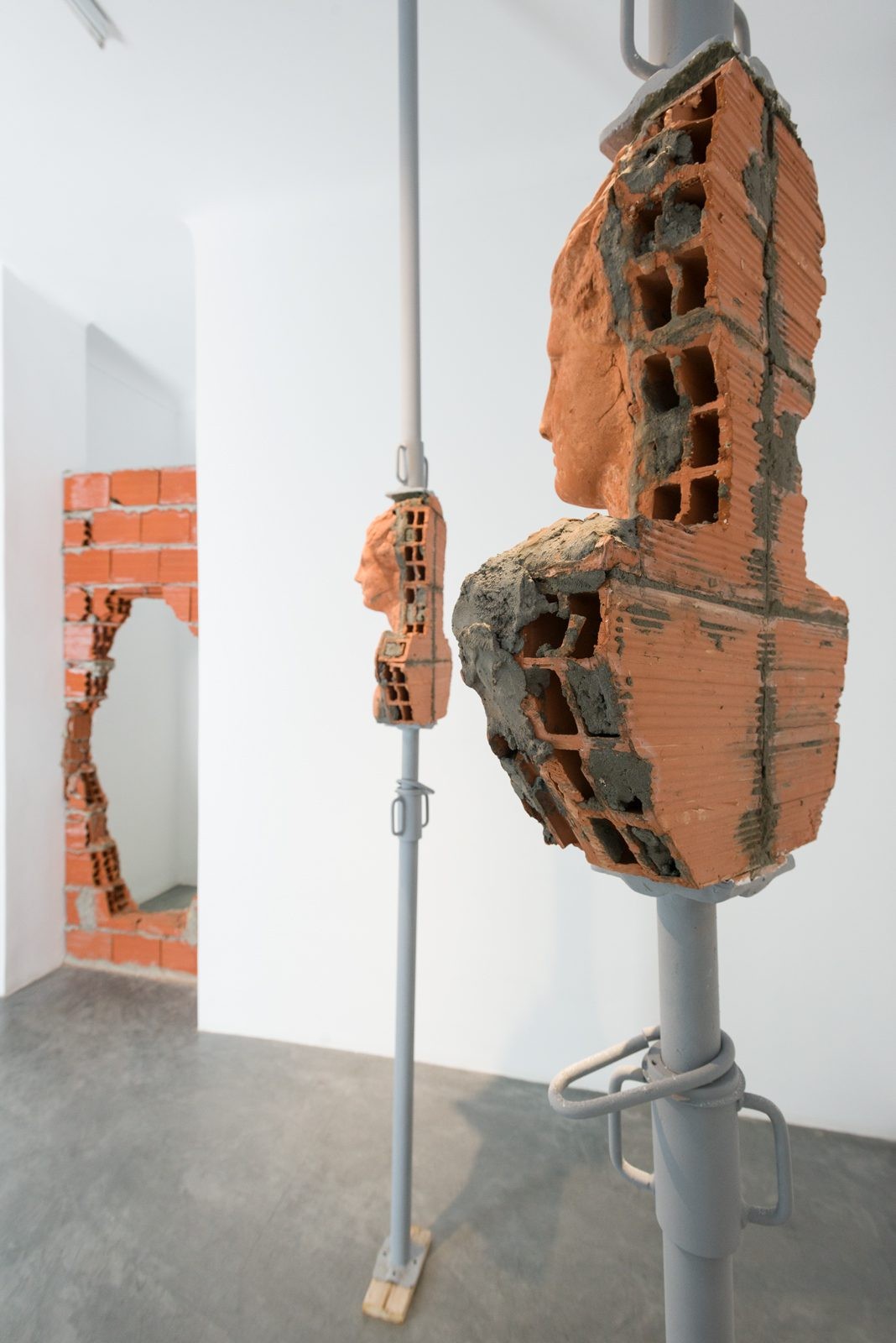 <figcaption> Malek Gnaoui, SC20/it’s you (Detail), 2020. Bricks, cement, round bars, 86h x 36,5w x 24,5d cm. From Essaïda-Carthage series. Courtesy of Selma Feriani Gallery and the artist. Photo © Pol Guillard