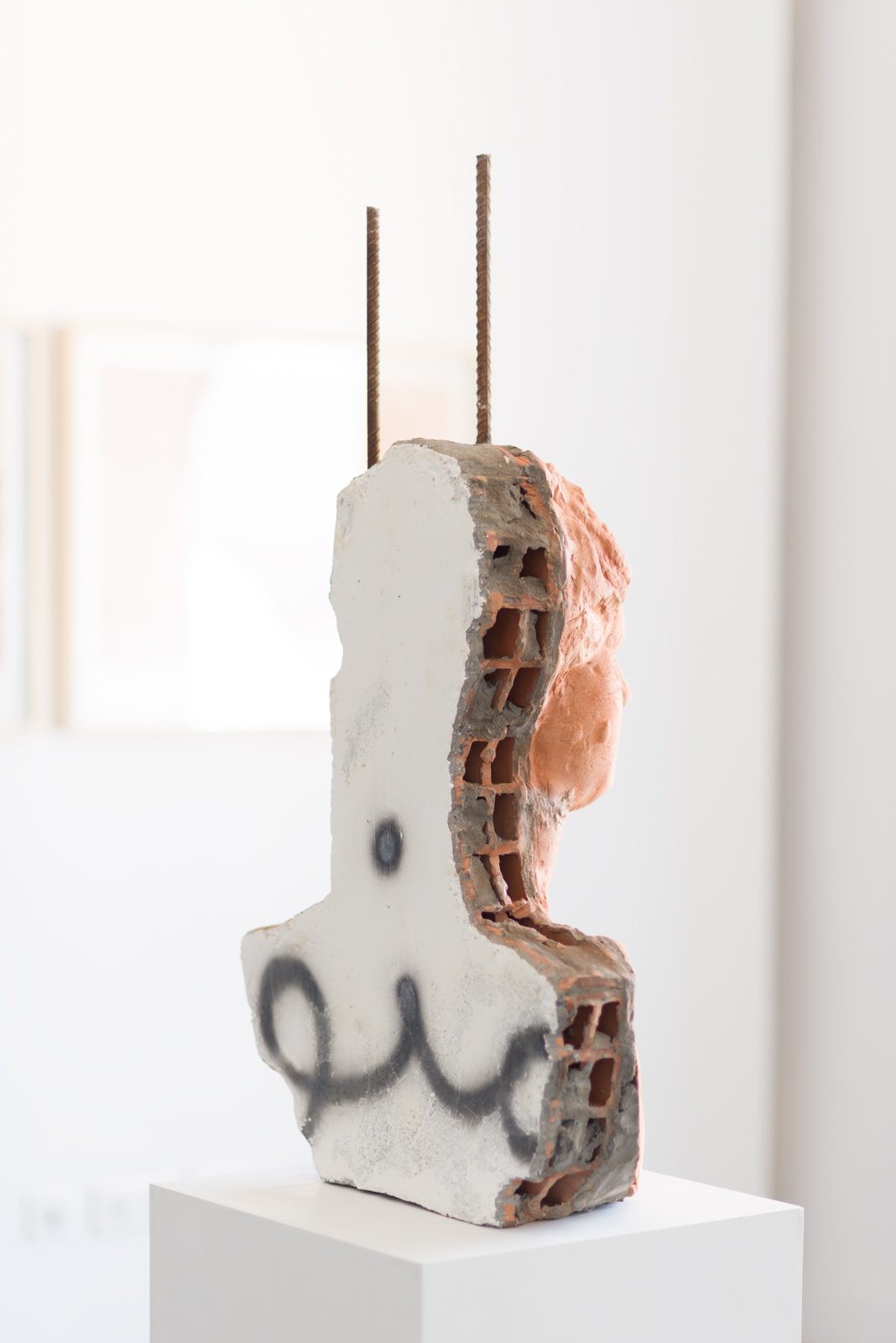 <figcaption> Malek Gnaoui, SC20/it’s you (Side perspective), 2020. Bricks, cement, round bars, 86h x 36,5w x 24,5d cm. From Essaïda-Carthage series. Courtesy of Selma Feriani Gallery and the artist. Photo © Pol Guillard