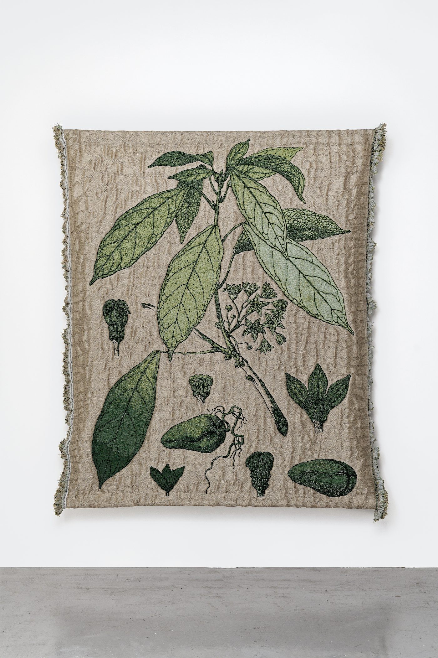 <figcaption> Otobong Nkanga, Histoires de noix de Cola – Démembrées, 2016, textile tissé / filé, polyester, coton organique, lin, acrylique. Courtesy Otobong Nkanga & Galerie In Situ-fabienne leclerc, Grand Paris. Photo : Aurélien Mole