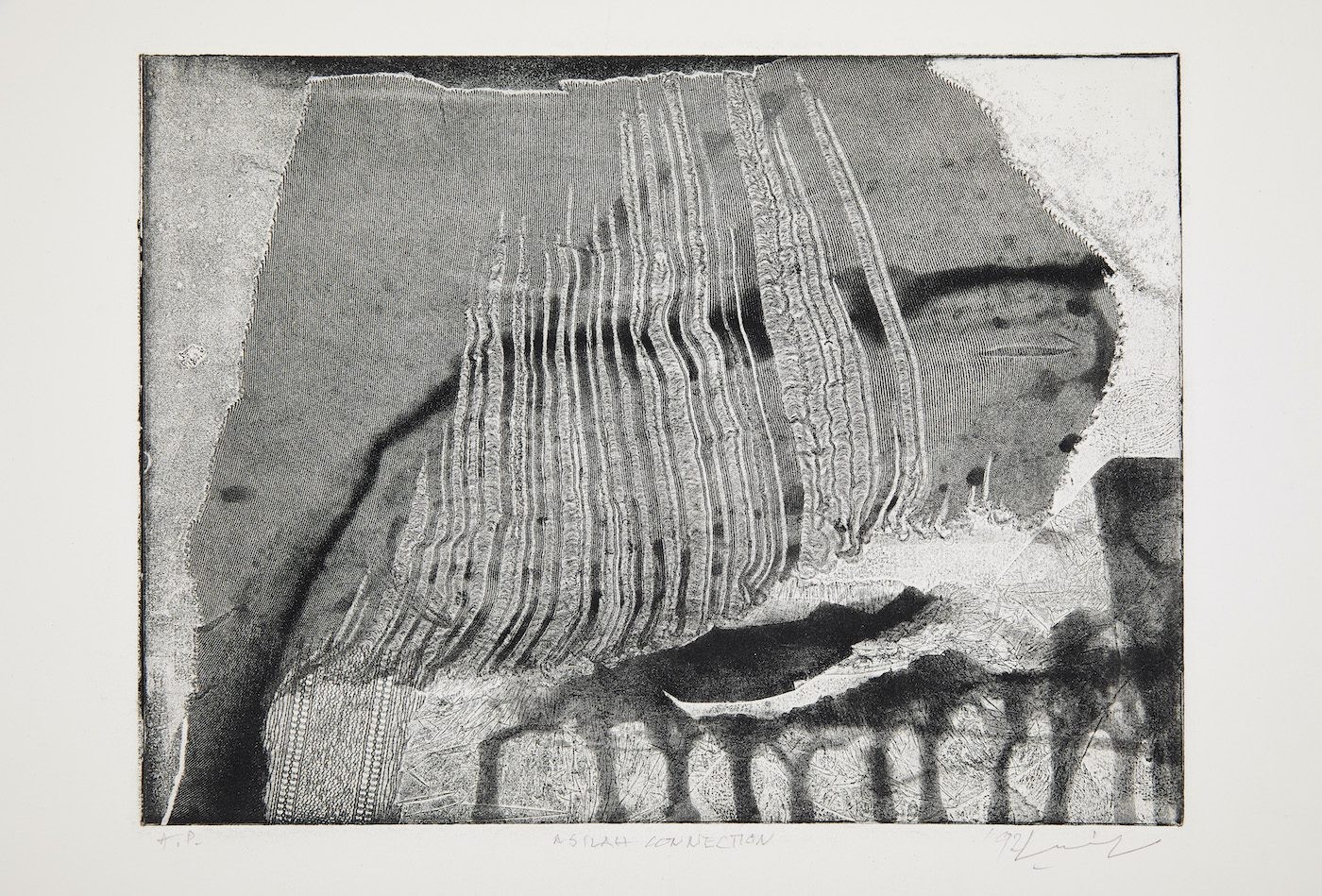 Mohammad Omar Khalil, Asilah Connection, 1992. Etching / softground / aquatint / spitbite, 24.5 x 33cm