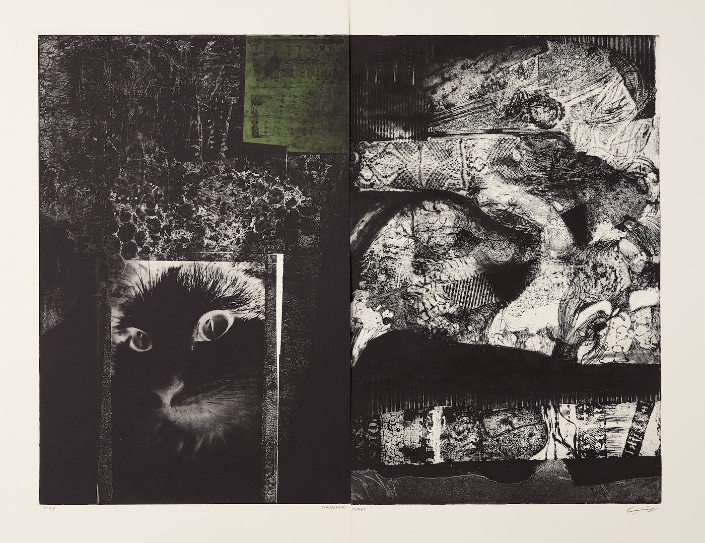 Tombstone Blues (1986) Mohammad Omar Khalil. Photograph by Andy Stagg, courtesy The Mosaic Rooms. Etching / softground / aquatint / spitbite, 91 x 121 cm