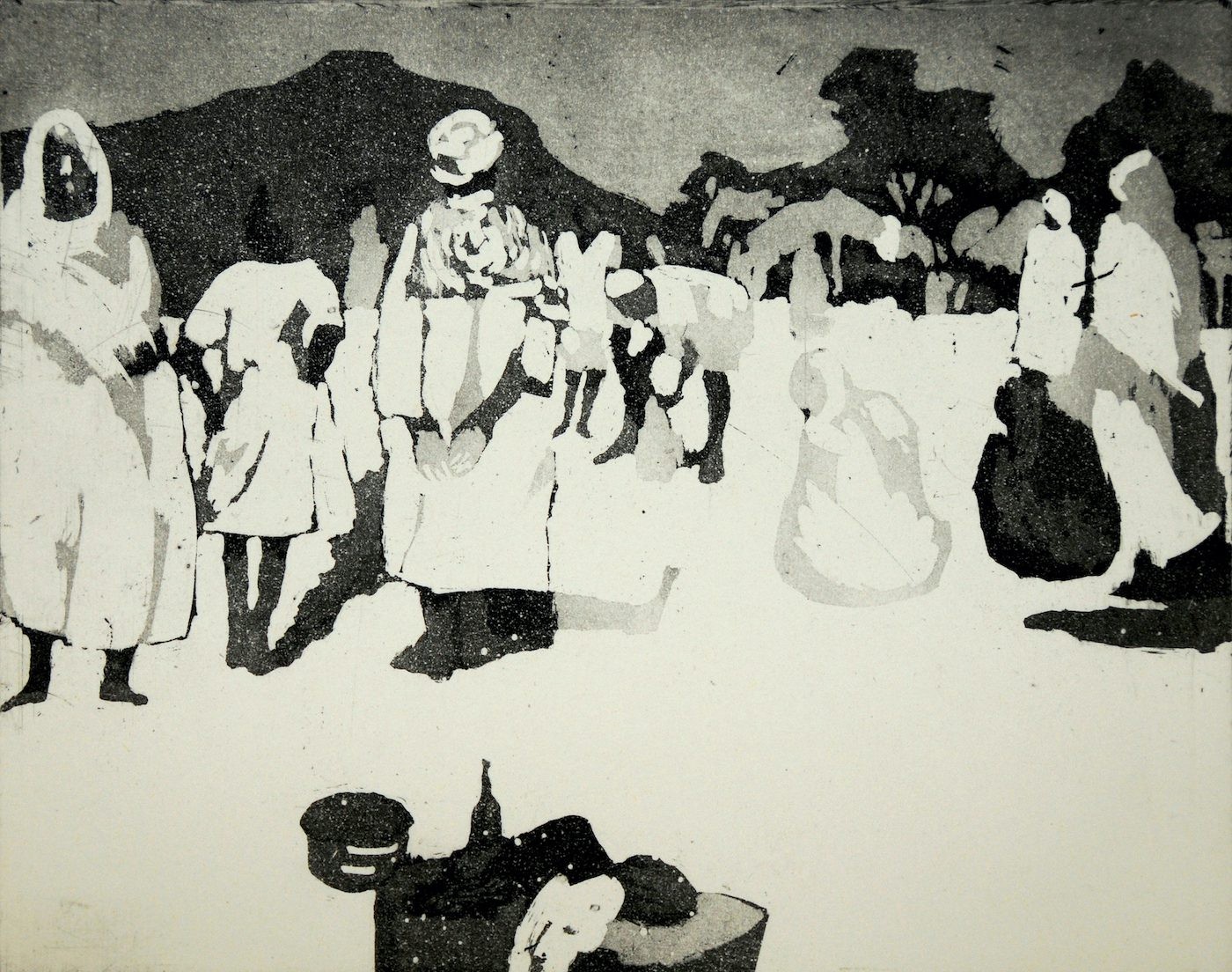 Mohammad Omar Khalil, The Market, 1965. Aquatint, 18 x 23cm