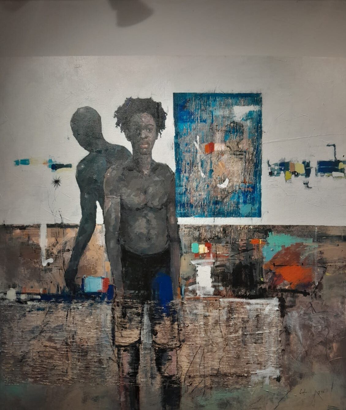 Visual artist and musician Coster Ojwang opened a new show at the Tribal Gallery entitled ‘Tracing the Lines’ on the 22nd of March. Ojwang’s works usually depicts various rural landscapes and urban scenes painted in a vibrant expressionist mode using broad impasto strokes in oil point. However, he has broken the mould in ‘Tracing the Lines’; there are none of his trademark landscapes to be seen, and the subjects of all the paintings presented are of models as well as close acquaintances to the artist himself. These paintings are darker and broodier than his previous bodies of work, with the majority of paintings being underscored by shades of opaque navy and deep-sea blue.